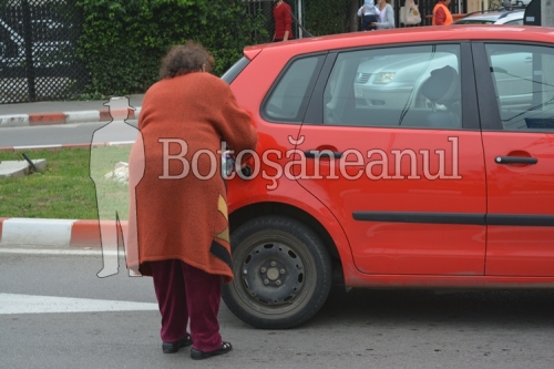 Femeia se afla la volanul unui Volkswagen Polo și cobora pe strada Nicolae Iorga. A trecut de marcajul pietonal, a depășit automobilul care fusese implicat în evenimentul rutier, însă imediat, când a ajuns în fața acestuia, a oprit. Oamenii strânși la fața locului nu au înțeles la început ce se întâmplă deoarece șoferița nu fusese responsabilă de accident, însă a părăsit rapid autoturismul. În scurt timp misterul avea însă să se elucideze. Șoferița s-a întors cu o sticlă de plastic din care a turnat grăbită în rezervor, provocând hohote de râs în rândul spectatorilor de ocazie, mulți dintre ei grăbindu-se să o fotografieze și să o filmeze. Femeia s-a urcat în mașină fără a fi luată la rost de polițiștii de la circulație și dusă a fost.
