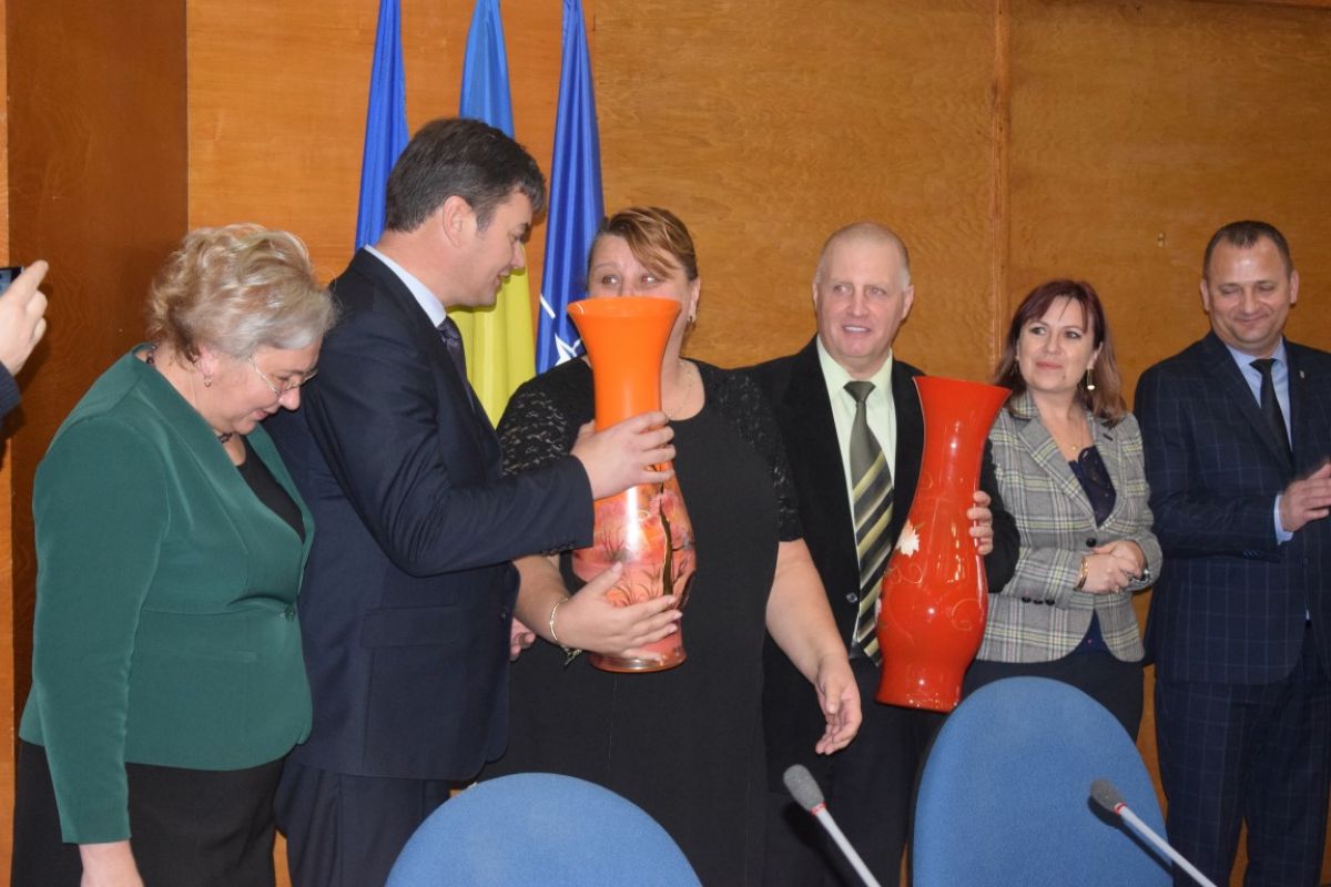 În semn de apreciere pentru munca depusă, cei doi au primit câte o… vază, în aceeași culoare aproximativ, diferite oarecum prin picturi. Iulia Bulie a fost nevoită să ridice ambele vaze în lipsa soțului.