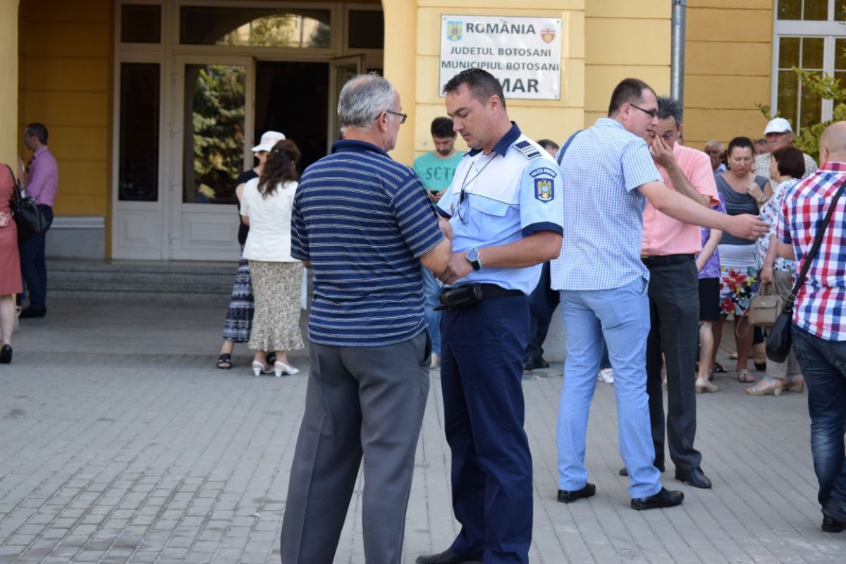 Un polițist a coborât și a intrat până la poartă pentru a întreba dacă au existat incidente neprevăzute în cadrul acțiunii de protest.