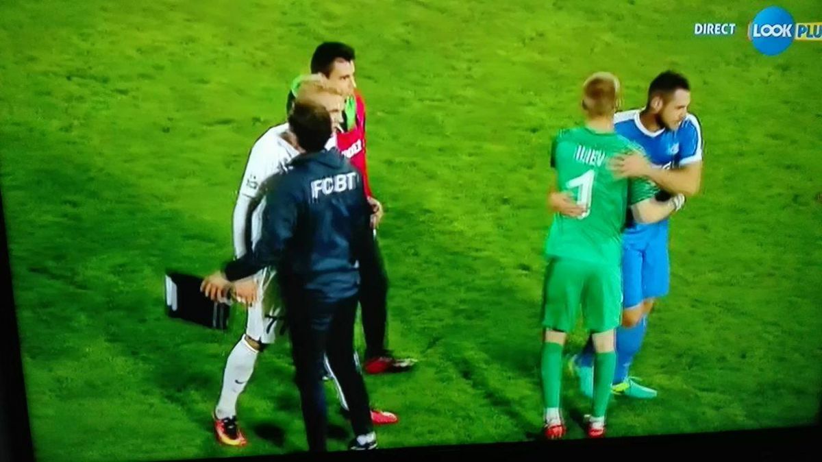 Odată cu fluierul final al arbitrului, spiritele s-au încins pe teren, Munteanu și Matulevicius fiind ținuți de colegi să nu se ia la bătaie. Istvan Kovacs s-a făcut că nu vede.