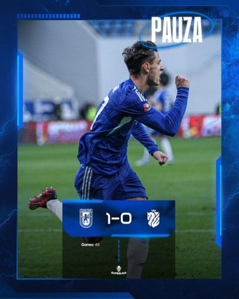 Gazdele au dominat prima repriză, însă golul a venit abia în minutul 45, când Ganea a pivotat și a marcat din centrul careului: 1 – 0.