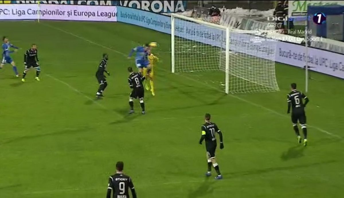 Minutul 79 le aduce oltenilor golul speranței. Alex Mateiu trimite cu capul în poartă după centrarea lui Bancu.