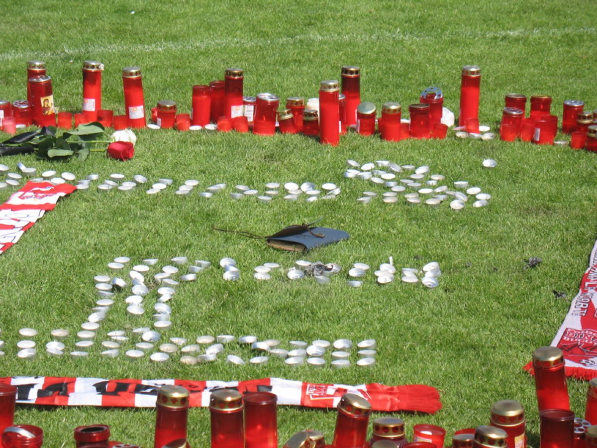 Stadionul din Ştefan cel Mare s-a transformat peste noapte într-un altar al durerii şi neputinţei. Pe gazon, în locul în care Patrick Ekeng s-a prăbuşit, zeci de lumânări formează numărul 14. E numărul de pe tricoul purtat de mijlocaşul dinamovist în toate meciurile oficiale. Aşa au decis colegii de echipă să îşi ia adio de la el.