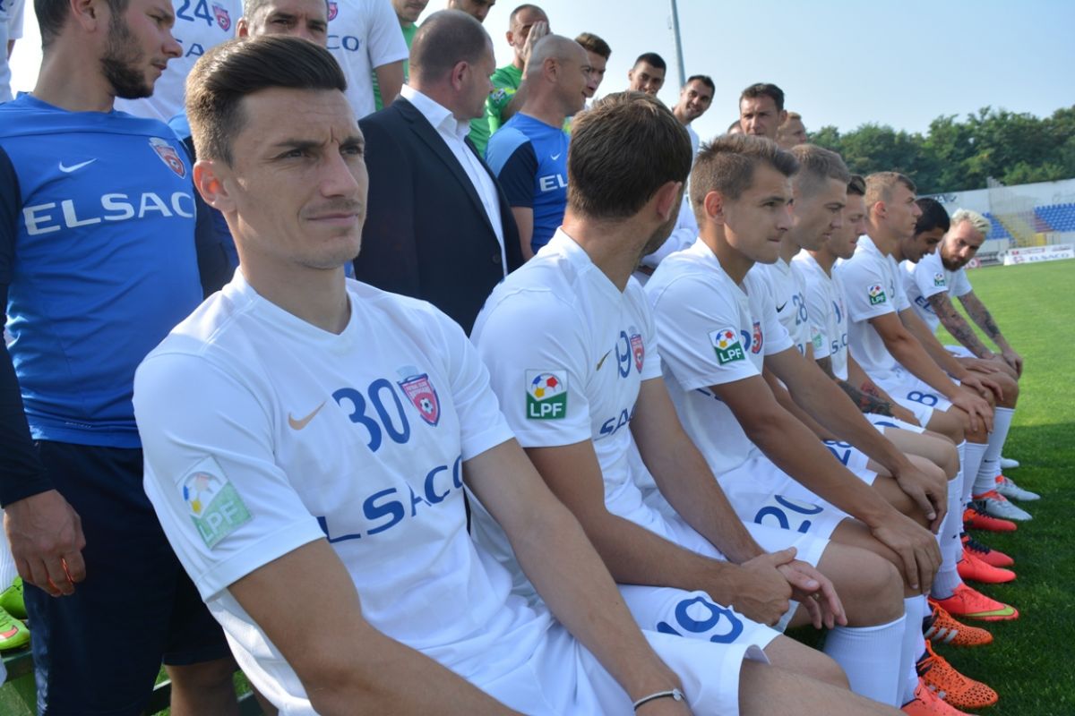 Roş-alb-albaştrii au susţinut miercuri dimineaţă şedinţa foto oficială pentru noul sezon fotbalistic. Jucătorii s-au aşezat la centrul terenului în deja clasicul echipament alb.