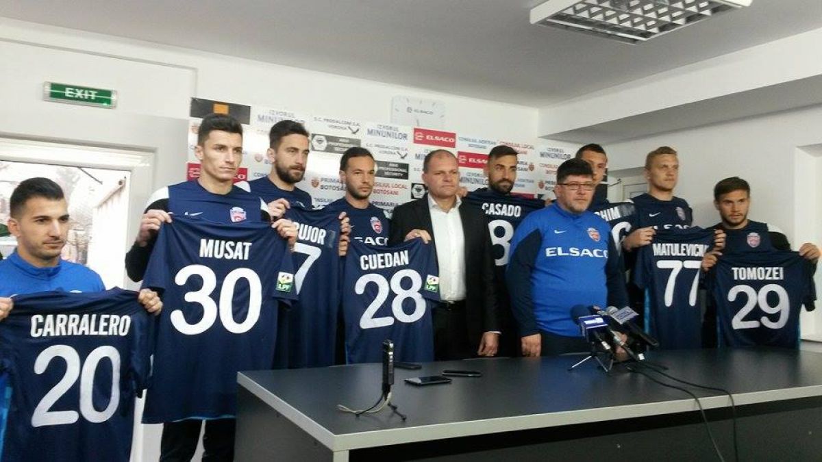 Echipa botoșăneană a achiziționat aproape o formație întreagă în această pauză de pregătire. Toți jucătorii cumpărați și care vor rămâne la echipă au fost prezentați astăzi dimineață, 17 februarie 2016, la sediul clubului.