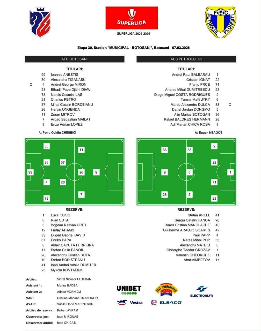 Anestis – Ilaș (46 Creț), Miron, Diaw, Țigănașu – Petro (46 Aldair), Ongenda, Bordeianu (61 Papa) – Mailat, Lopez (61 Kovtalyuk), Mitrov (77 Bodișteanu).