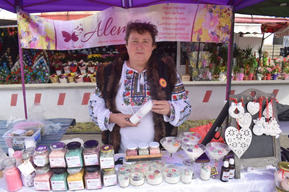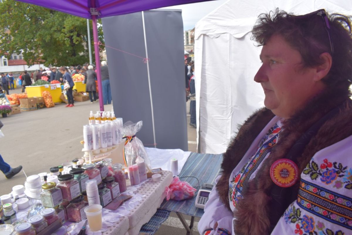 Am găsit-o pe d-na Liliana la Târgul de Produse Agro-alimentare desfășurat în weekend lângă Piața Centrală. A venit pentru prima dată. Anul trecut nu a avut loc pe platoul principal și și-a vândut marfa lângă tarabele cu căciuli. Anul acesta s-a înscris în Asociația „Produs în România” și s-a regăsit în șirul tarabelor la care s-au oprit oficialitățile.
