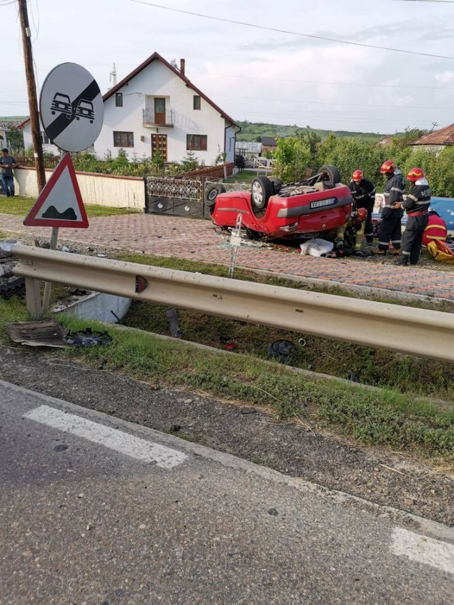 Autovehiculul Renault Megane în care se afla a părăsit carosabilul și a lovit un cap de pod, după care s-a răsturnat pe trotuar, la câțiva metri de șosea.