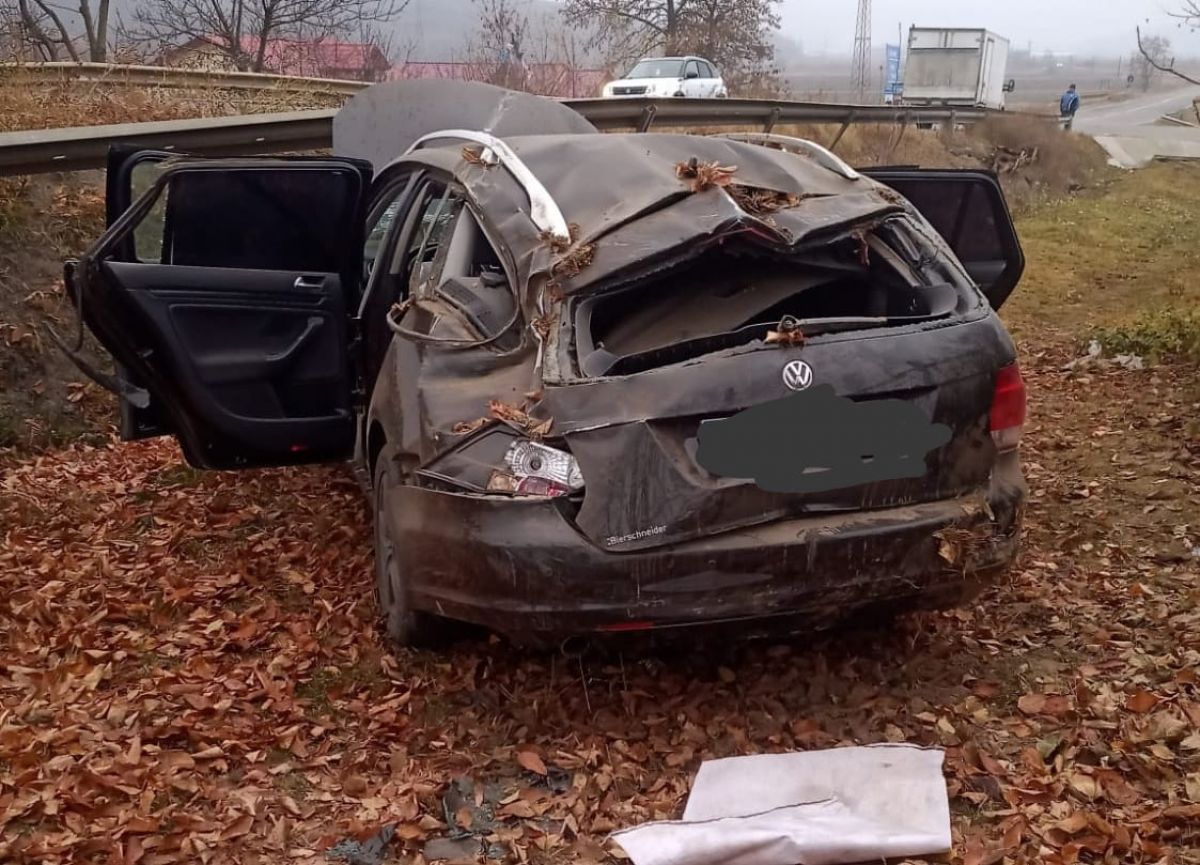 La intrare în localitatea Buda, comuna Copălău, o șoferiță avea nevoie de ajutor după ce s-a răsturnat într-un șanț de pe marginea drumului.