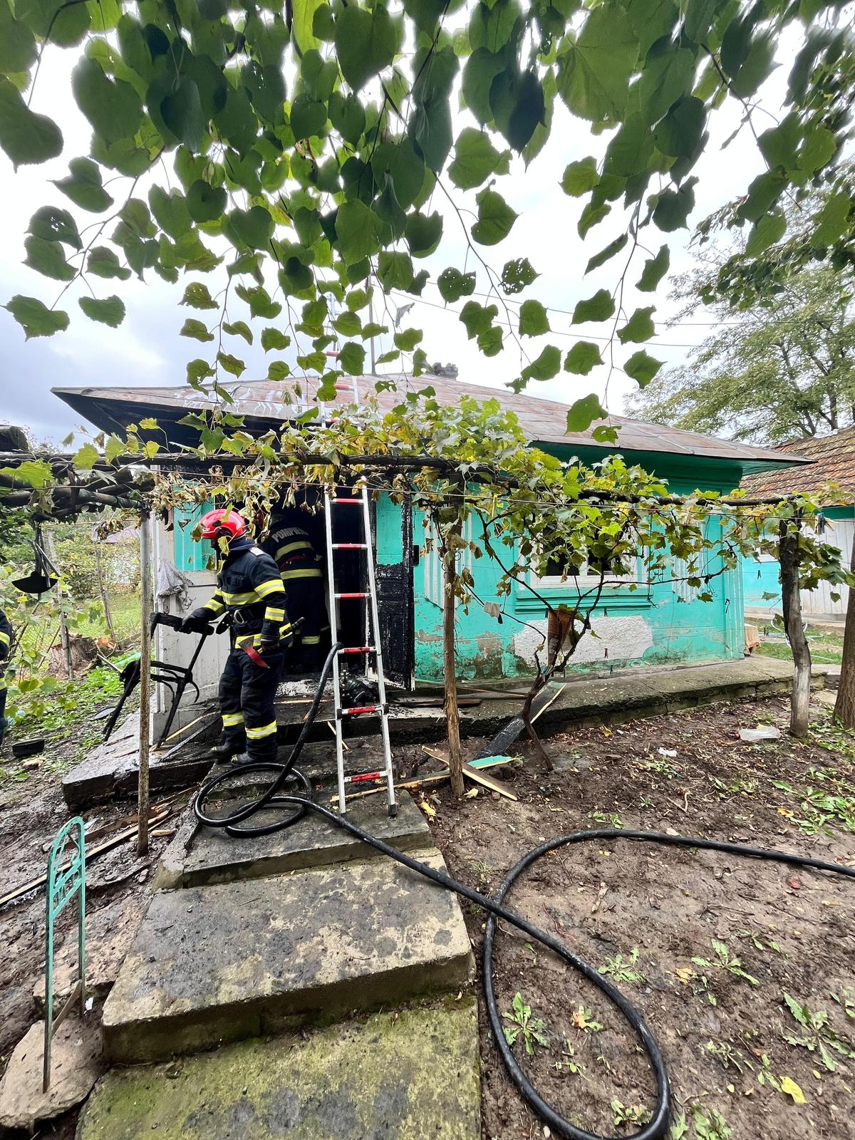 Pompierii au acționat pentru lichidarea incendiului și pentru împiedicarea extinderii acestuia la restul casei.