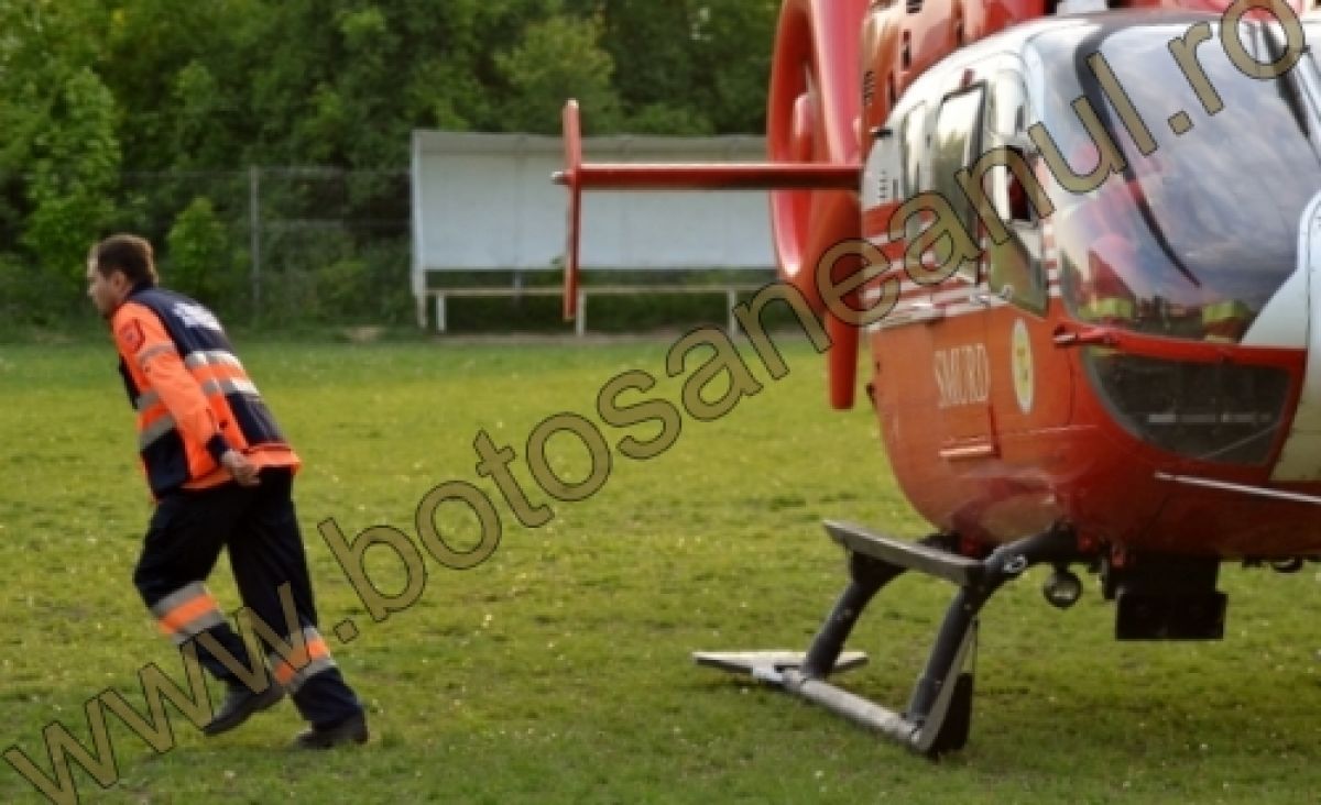 Elicopterul SMURD a aterizat ieri, 24 octombrie 2015, pe stadionul 1 Mai din municipiul Dorohoi pentru a prelua o femeie în stare gravă.