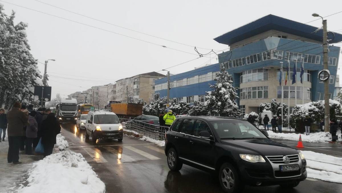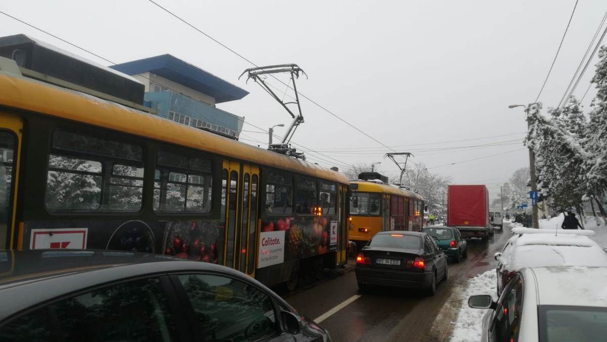 „Până ce nu se degajează linia circulaţia tramvaielor este sistată”, ne-a spus Bogdan Buhăianu, şeful departamentului tehnic de la SC Eltrans SA.