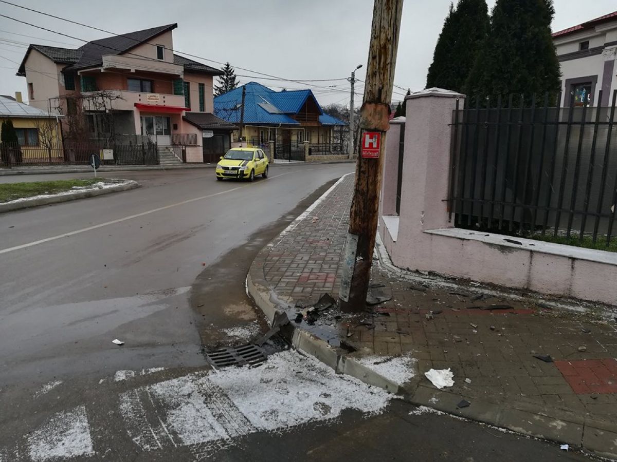 Şoferul unui autoturism marca Opel a pierdut controlul volanului şi a ajuns cu maşina într-un stâlp ce susţine reţeaua de electricitate.