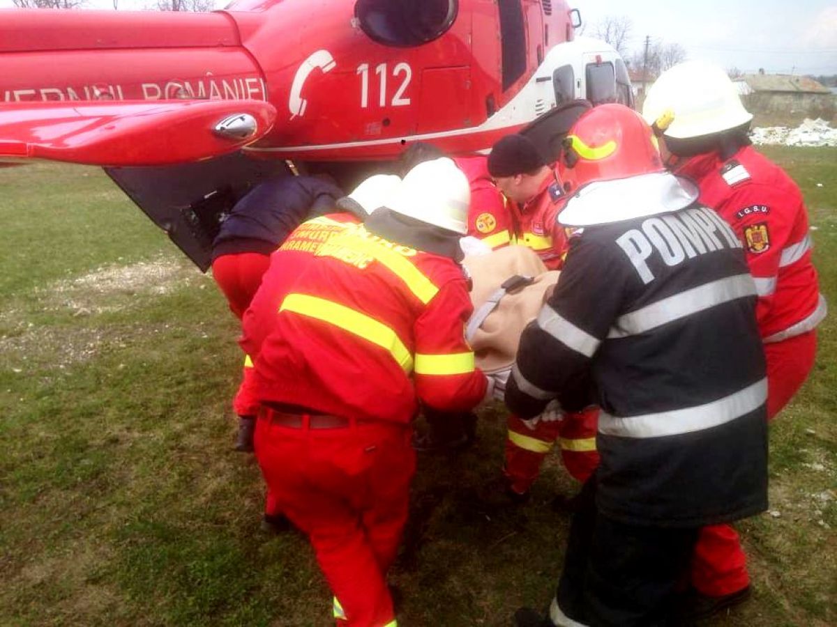 Victima a fost preluată de către echipajul aero-medical, marţi în jurul orei 12.30, de pe stadionul oraşului Săveni .