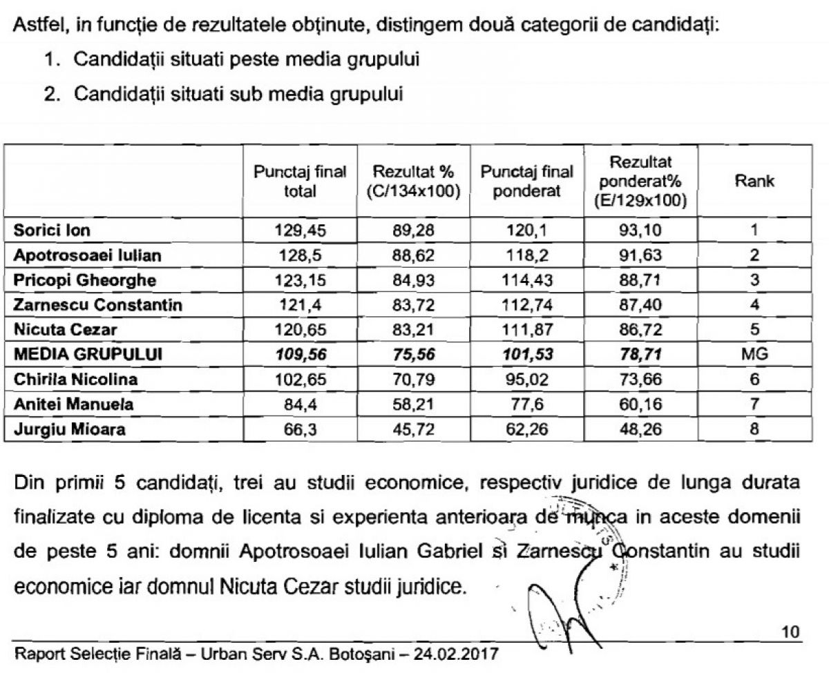 În aceste condiții, aleșii de la municipiu ar trebui să revină asupra HCL 55/2017 și să voteze membrii CA ținând cont de rezultatele concursului, ceea ce înseamnă că, potrivit notelor, acesta ar urma să fie format din Ion Sorici, Iulian Apotrosoaei, Cezar Nicuță, Constantin Zărnescu și Gheorghe Pricopi. Practic, PSD-iștii din CL ar trebui să își voteze scoaterea de sub controlul propriului partid a SC Urban Serv SA întrucât doar Ion Sorici ar fi social-democrat, însă și el este din Brașov. Culmea ironiei, social-democrații ajung să regrete că după vreo doi ani s-au gândit dintr-o dată să îi respingă adeziunea la PSD lui Cezar Nicuță întrucât el ar fi fost singurul membru de la Botoșani al partidului de guvernământ.