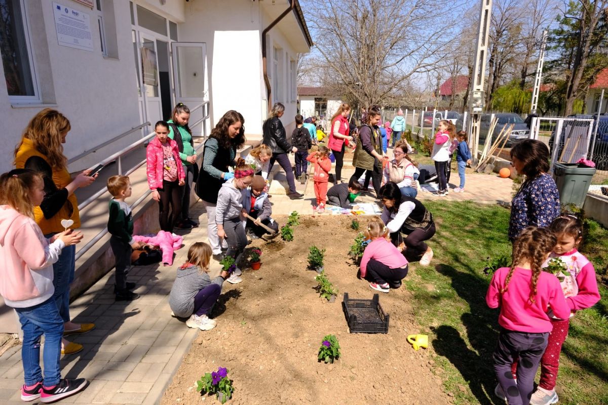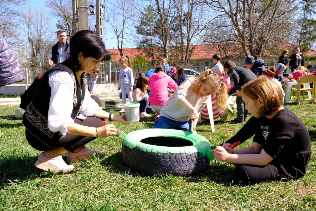 Timp de câteva ore, curtea școlii s-a transformat într-un atelier de mediu, în care adulți și copii, împreună, au militat pentru salvarea planetei.