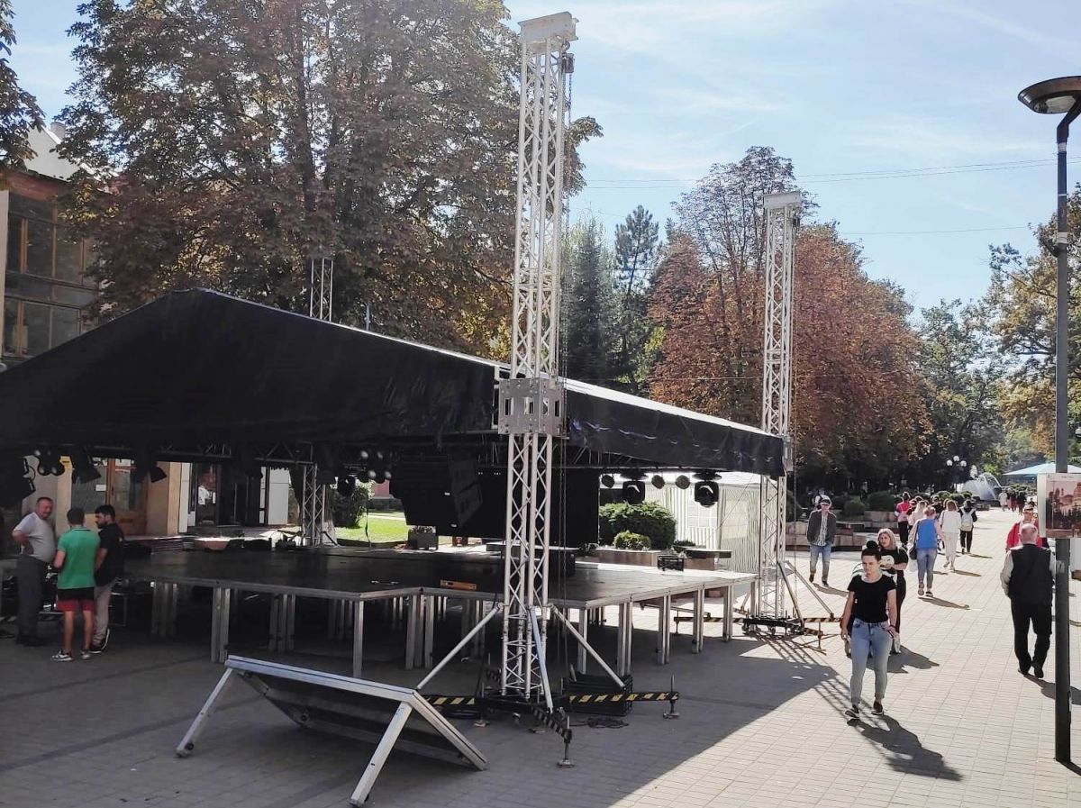 În apropierea corturilor care astăzi au fost casă pentru atelierele de artizanat s-a montat deja scena pe care sâmbătă și duminică vor cânta zeci de artiști din România și Republica Moldova.