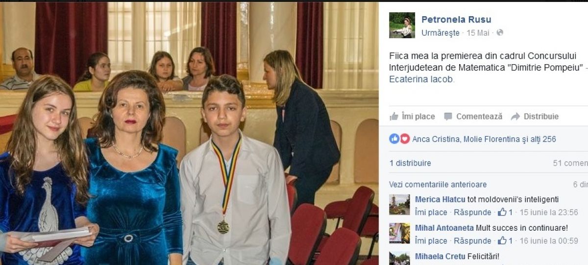 Printre acești elevi merituoși se regăsește și fiica unei îndrăgite interprete de muzică populară, Petronela Rusu, respectiv Ecaterina Iacob de la Colegiul Național Mihai Eminescu. Mamă și fiică deopotrivă au primit felicitări din partea celor apropiați pe conturile de socializare.
