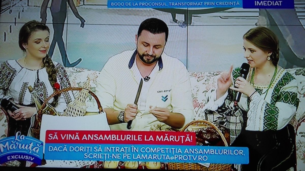 Ele au fost invitate „La Măruţă”, unde au mers cu mai multe cadouri reprezentative pentru judeţ. Astfel, printre altele, i-au oferit realizatorului emisiunii o cunună de usturoi de la Copălău, pe care acesta l-a „testat” pe un operator, vin de Botoşani şi o mască din colecţia lui Stan Dănuţă, meşter popular din Băluşeni. Aceasta din urmă Cătălin Măruţă a ţinut neapărat să o probeze. Nu el, ci acelaşi cameraman, care anterior a fost pus să guste şi din usturoi: "este antibiotic natural". În schimb, realizatorul TV a îmbrăcat în pauza publicitară un tricou care avea imprimate chipurile lui Mihai Eminescu, George Enescu, Ştefan Luchian şi Nicolae Iorga, alături de mesajul „Hai la Botoşani”.