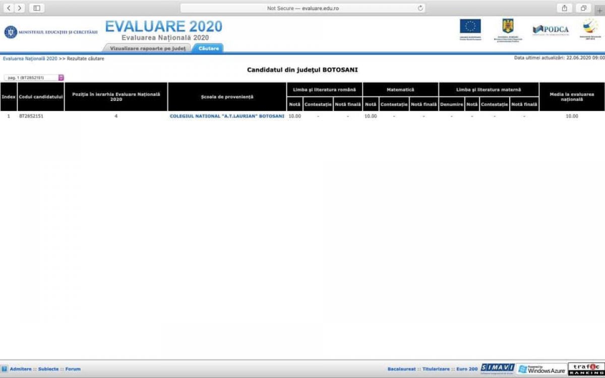 La nivelul județului 12 elevi au reușit să obțină media zece la Evaluarea Națională. Printre aceștia se numără fiica fostului europarlamentar, Mihai Țurcanu.
