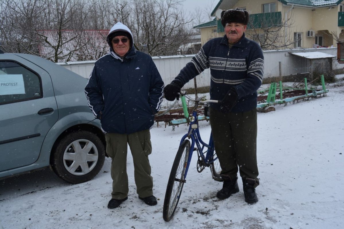 A fost mobilizare generală duminică dimineaţă la Mihălăşeni, la mitingul auto organizat pentru reabilitarea drumului judeţean până la Dângeni. Deşi nu are maşină, un pensionar din comună a ţinut totuşi neapărat să participe la acţiune.