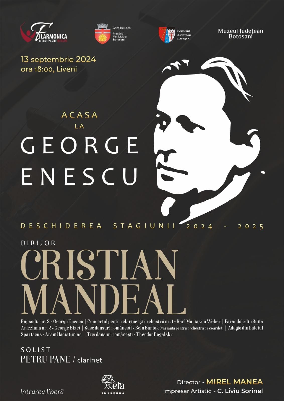 „Un dirijor celebru, de mare clasă artistică, maestrul Cristian Mandeal. O orchestră frumoasă, special mărită pentru acest grandios spectacol. Mergem «Acasă la Enescu» pentru un concert eveniment. Vă așteptăm pe toți vineri, 13 septembrie, de la ora 18:00 la Liveni, Casa Memorială a marelui nostru geniu, Enescu!”, au transmis reprezentanții Filarmonicii Botoșani.