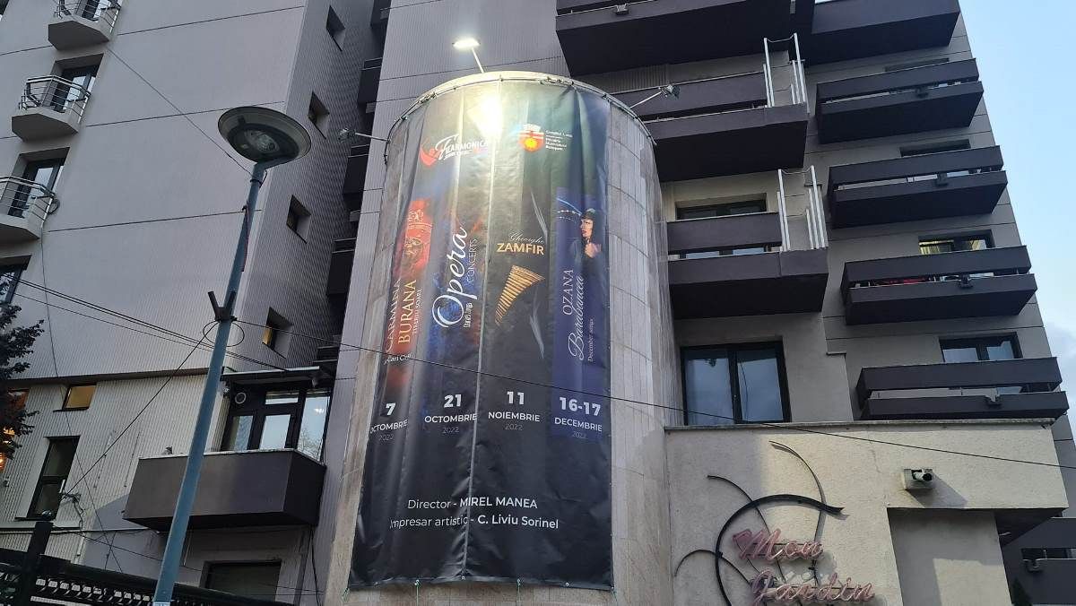 În afara afișelor pe care ne-am obișnuit de multă vreme să le vedem pe la avizierele din oraș, au fost amplasate două mesh-uri de dimensiuni generoase pe Casa de Cultură a Sindicatelor și Hotel Rapsodia, care prezintă cele mai importante spectacole din această toamnă: Carmina Burana, Opera Concerts dirijat de Daniel Jinga, Gheorghe Zamfir și concertele de sărbători cu Ozana Barabancea la pupitru.