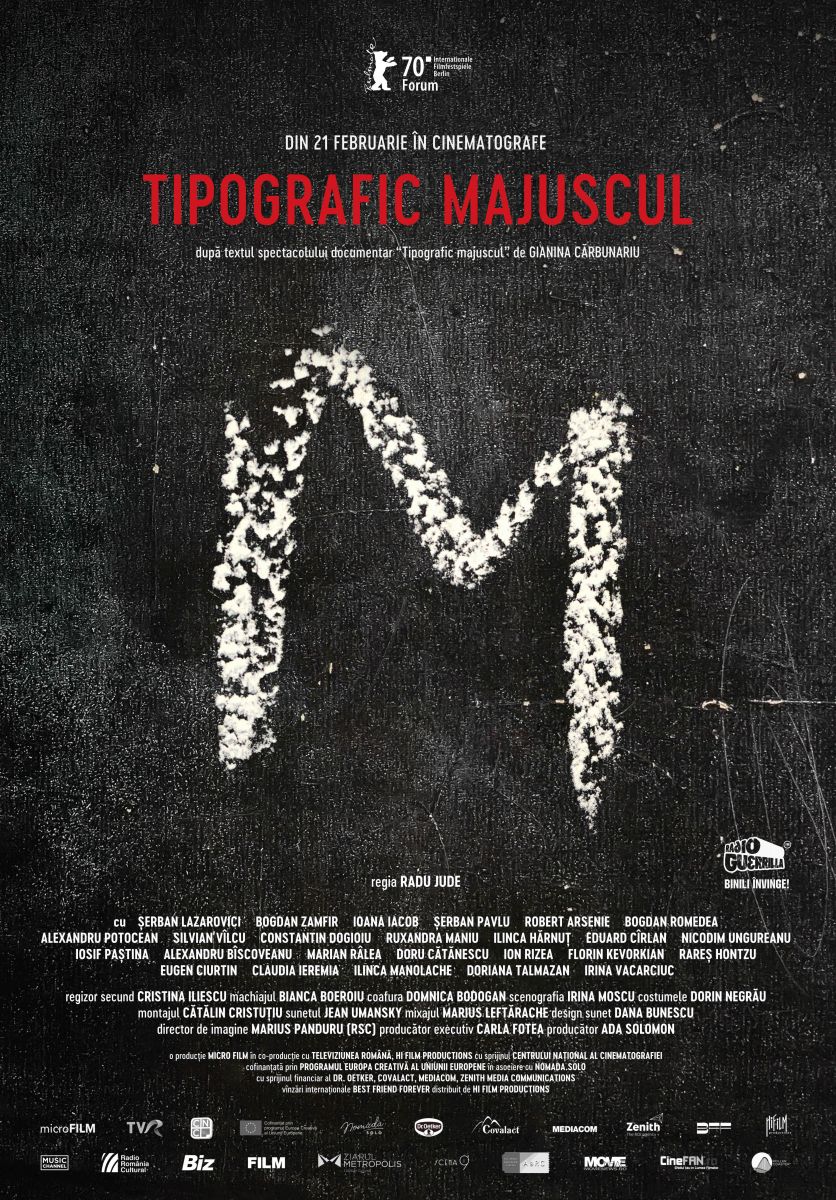 „Tipografic Majuscul” este o producție microFILM în coproducție cu Televiziunea Română și Hi Film Productions. Cu sprijinul Centrului Național al Cinematografiei,cofinanțat prin Programul Europa Creativă al Uniunii Europene, în asociere cu nomada.solo, cu sprijinul financiar al Dr. Oetker, Covalact, MediaCom, Zenith Media Communications. Vânzări internaționale Best FriendForever, distribuit în cinematografe de Hi Film Productions.