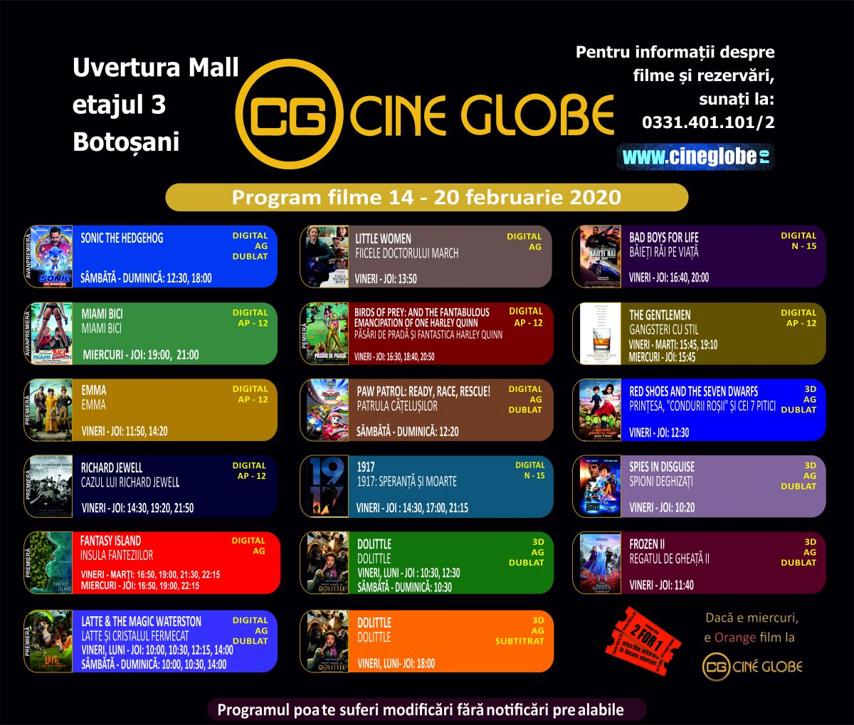 ”Miami Bici”, ”Emma”, ”Sonic teh Hedgehog”, Cazul lui Richard Jewell”, ”Insula Fanteziilor”, dar și ”Patrula cățelușilor” și ”Dolittle” sunt câteva dintre filmele care vă așteaptă începând de astăzi la Cine Globe Botoșani.