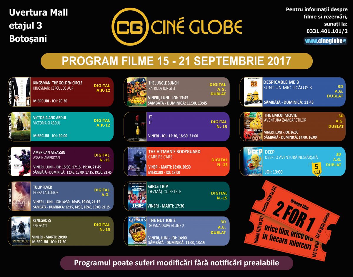 Vezi mai jos PROGRAMUL complet Cine Globe