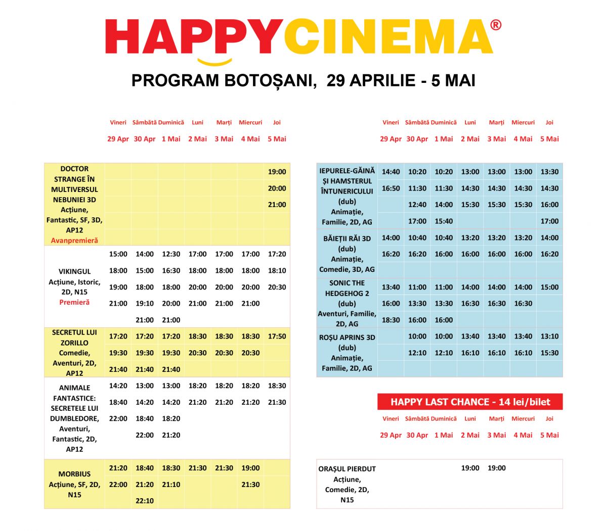 Duminica 12:30, 16:30, 18:00, 20:00, 21:00
