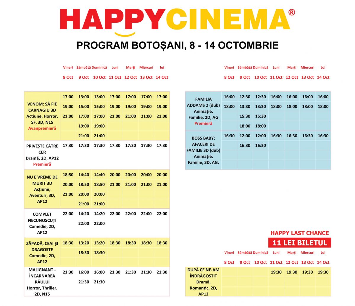 Comedii, acțiune, horror, aventuri, thriller, dramă sau animație. O ofertă atractivă pentru toate gusturile, începând de astăzi, la Happy Cinema Botoșani.