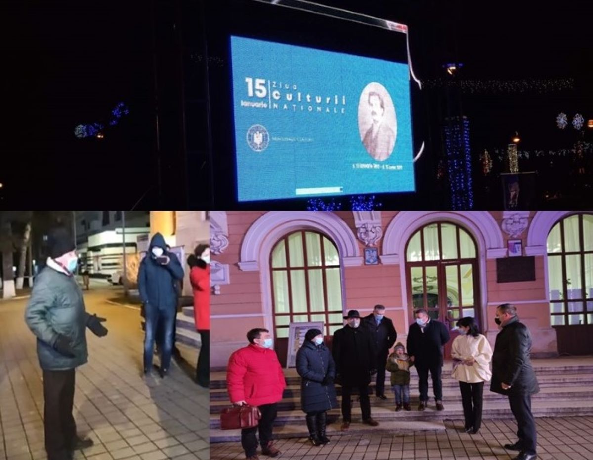 Finalul Zilelor Eminescu la Botoșani: Discursuri în ger, Eminescu în proiecții luminoase și un cetățean supărat că nu știe ce înseamnă online pe ”americănește” – GALERIE FOTO&VIDEO
