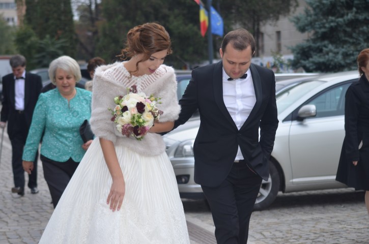 Mireasa a venit cu o altă mașină, iar viitorul soț i-a ieșit în întâmpinare. Înconjurați de mai mulți tineri, Alex și Bianca au urcat mai apoi în sala de ședințe a Consiliului Local. Ceremonia nu a fost una lungă, iar DA-urile care au marcat începutul unei căsnicii au fost rostite hotărât. Atmosfera a fost destinsă de-a binelea de-o glumă a șefului de la Starea Civilă, Constantin Gabur, la care mirele a răspuns natural stârnind zâmbete în sală.