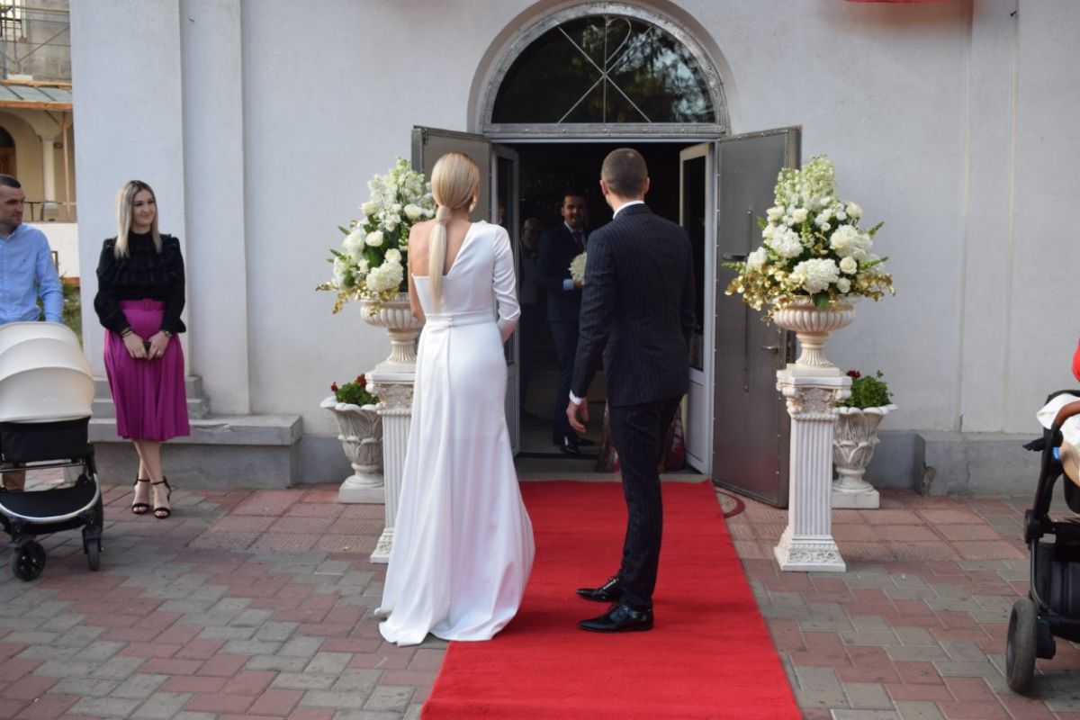 Ceremonialul religios a fost programat la ora 18:00, la Biserica Vovidenia din municipiul Botoșani. Primii au ajuns nașii, Gabriel Sănduc și soția sa Bianca. Apoi au apărut mirii, Mircea și Vladiana împreună cu fiica lor, Victoria Elena, născută în preajma sărbătorilor pascale, anul acesta.