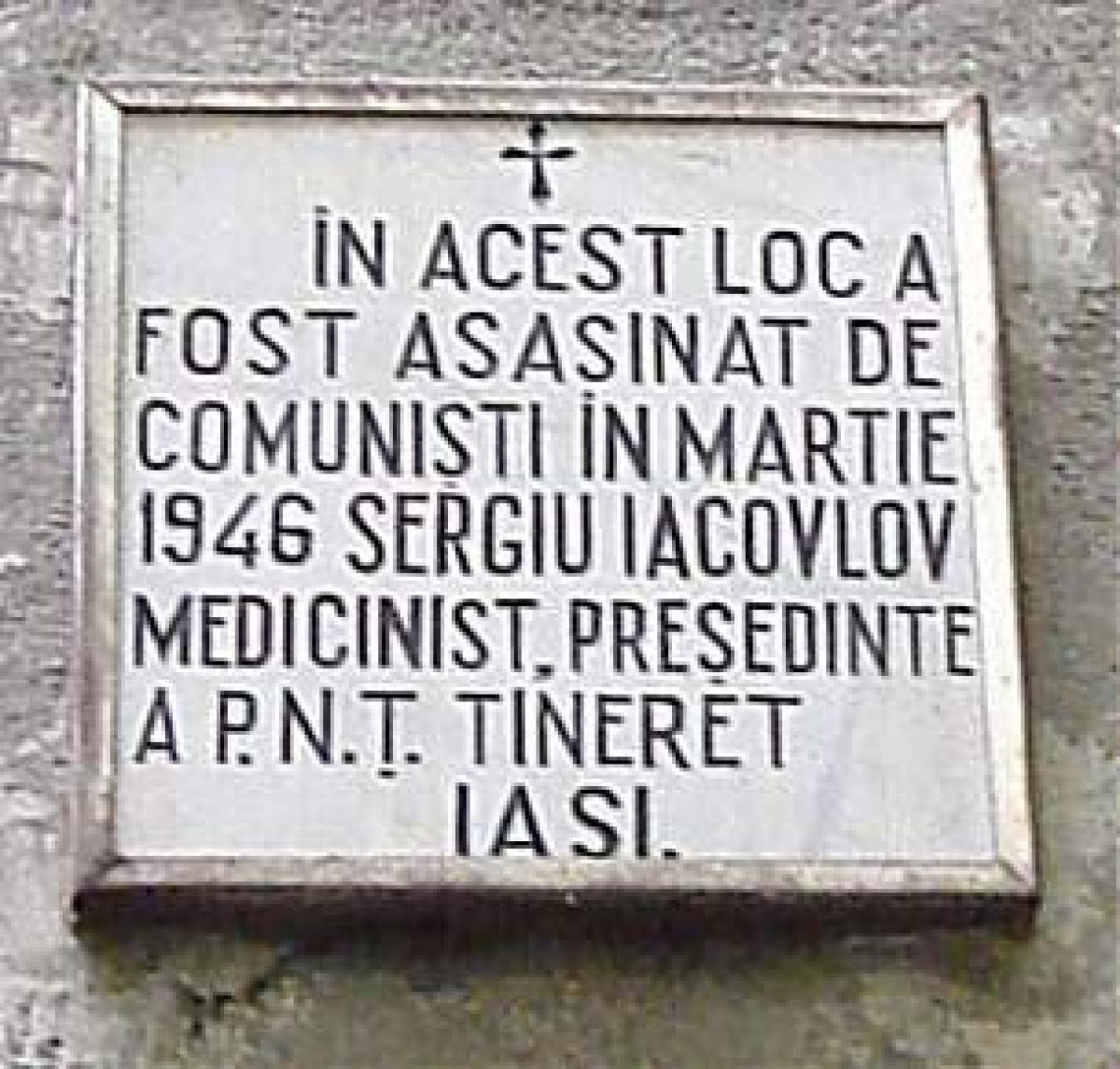 Studentul Sergiu Iacovlov, prima victimă a comuniștilor la Iași în plină luptă de instaurare a regimului în România, a fost comemorat vineri chiar în locul unde a fost împușcat. Lider al grupării tineretului Partidului Național Țărănesc, Iacovlov avea 22 de ani în 19 martie 1946, când a fost ucis în stradă după ce și-a anunțat candidatura la șefia Societății Studenților Mediciniști, având contracandidat un reprezentant al comuniștilor.