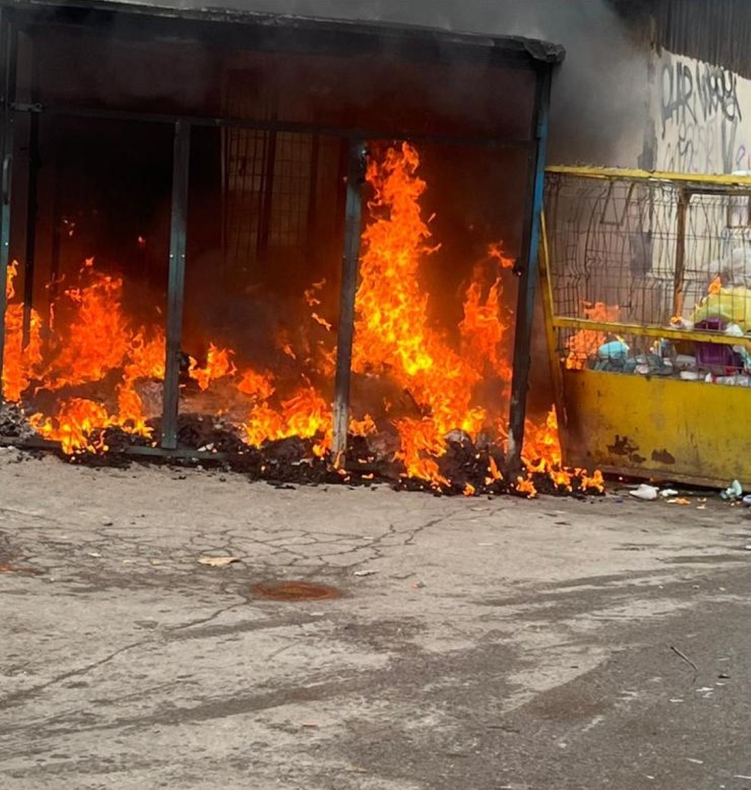 Un container unde erau depozitate deșeuri de hârtie a fost cuprins de flăcări.