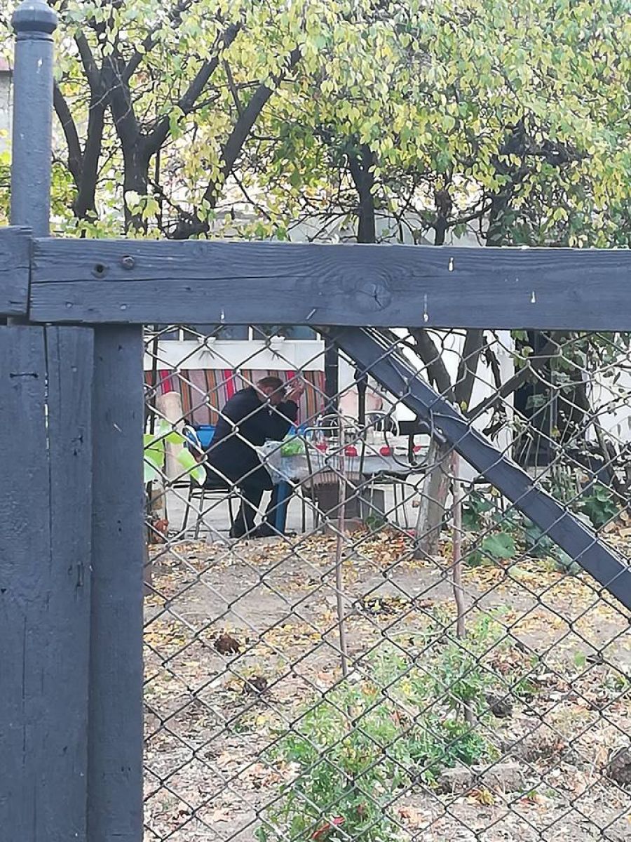 Proprietarul în curtea căruia a izbucnit un incendiu, în urmă cu puţine minute, stă în curtea casei sale cu capul cuprins în mâini.