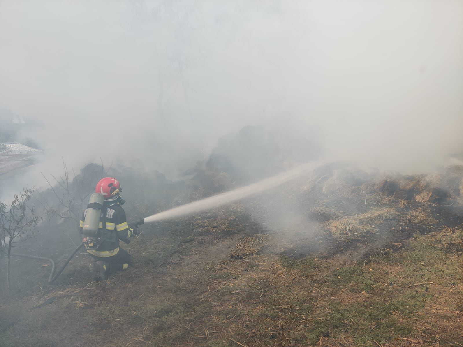 Incendiul a fost localizat și lichidat după aproape trei ore. Au ars aproximativ 30 de tone de baloți de furaje. Cauza probabilă este în curs de stabilire.