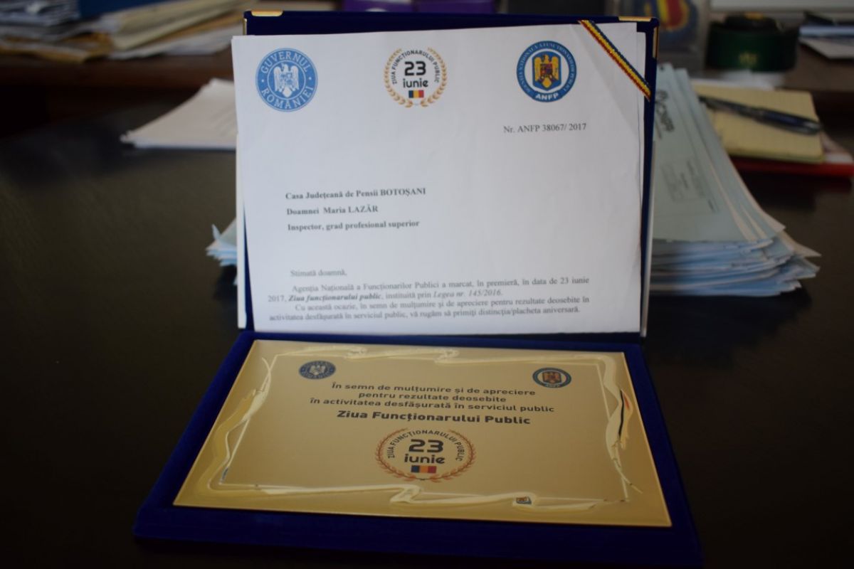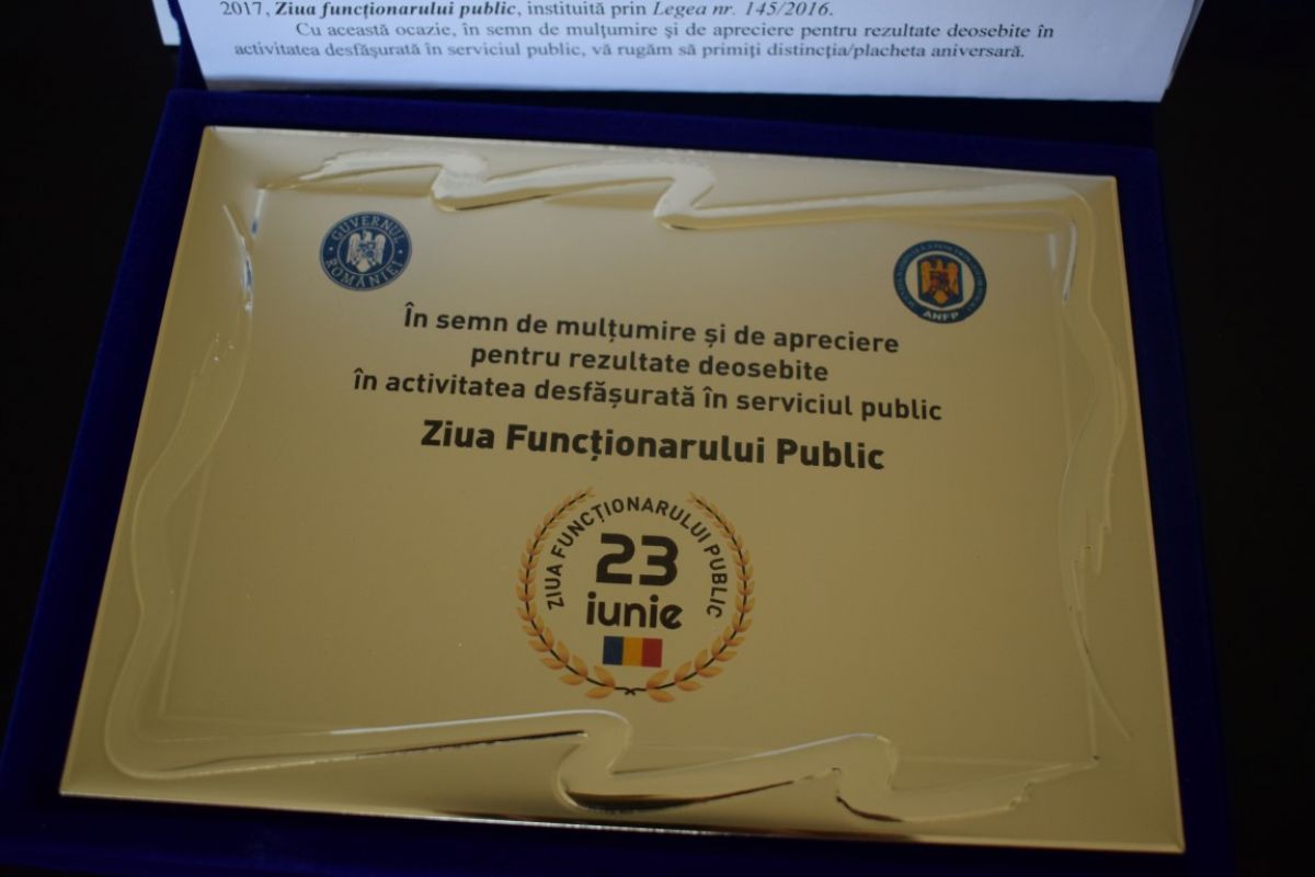 Maria Lazăr a primit o plachetă din partea ANFP. Anul acesta este pentru prima dată când au fost premiați funcționarii publici cu rezultate deosebite.