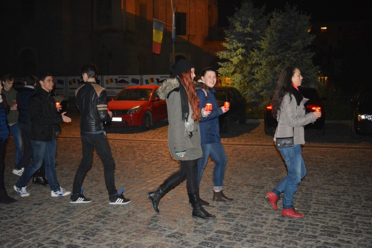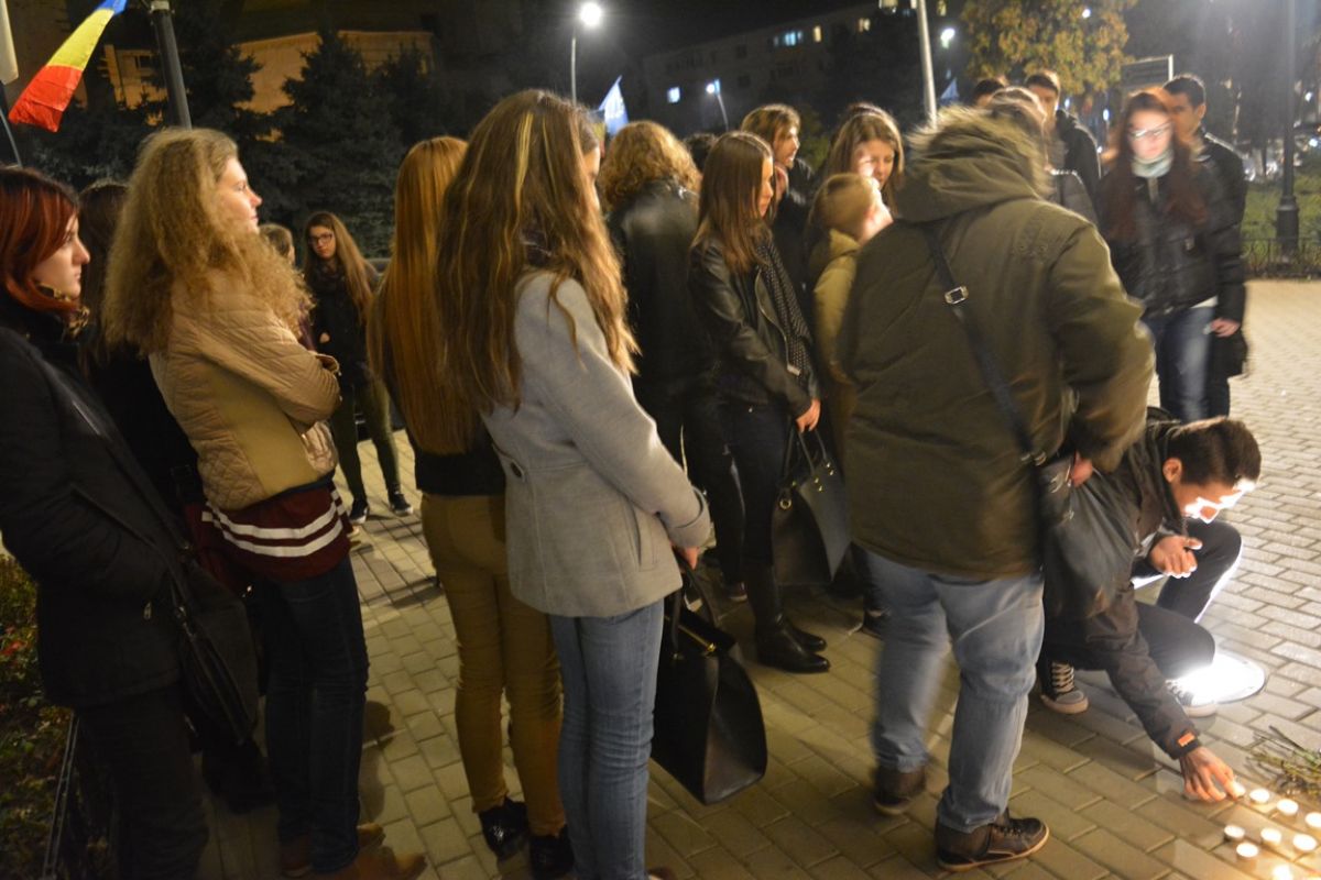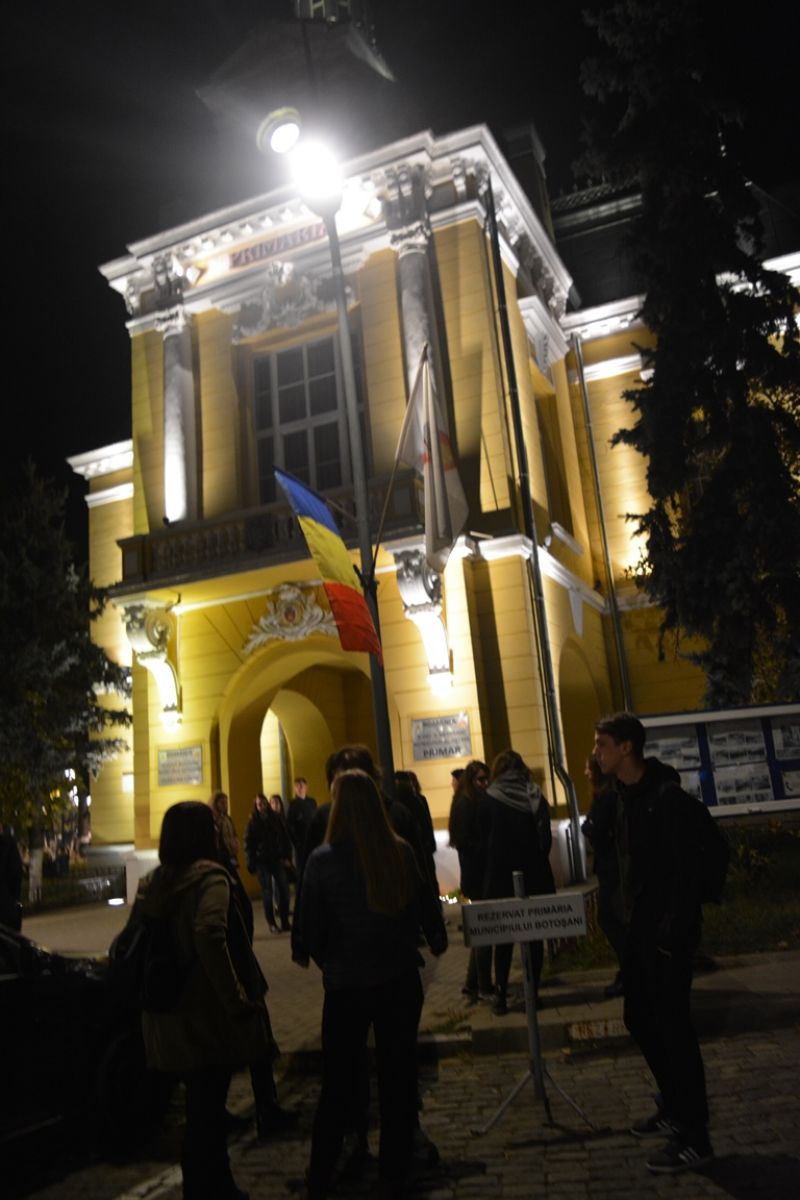 Majoritatea elevi, cei prezenți acolo discutau în șoaptă, marcați, despre ceea ce s-a întâmplat noaptea trecută la concertul trupei Goodbye to Gravity. Printre ei se regăsea și consilierul local Călin Bosovici, care a ținut să fie alături de copilul său la manifestarea din centrul orașului. Acțiunea de aici s-a suprapus cu una asemănătoare desfășurată în capitală chiar la clubul Colectiv, unde a avut loc tragedia și unde supraviețuitorii s-au întors seara aceasta ca să aprinsă lumânări. La Botoșani mobilizarea s-a făcut pe Facebook și cu toate că a fost anunțată abia după-amiază, a reușit să adune zeci de persoane chiar la ora stabilită, 20:00, însă după un sfert de oră încă erau oameni care tot veneau spre locul stabilit, unii dintre ei discutând despre faptul că trupa Goodbye to Gravity, la concertul căreia a avut loc tragedia, avea programată în decembrie o reprezentație și la Botoșani. 27 de oameni au decedat în incendiul de la Clubul Colectiv.
