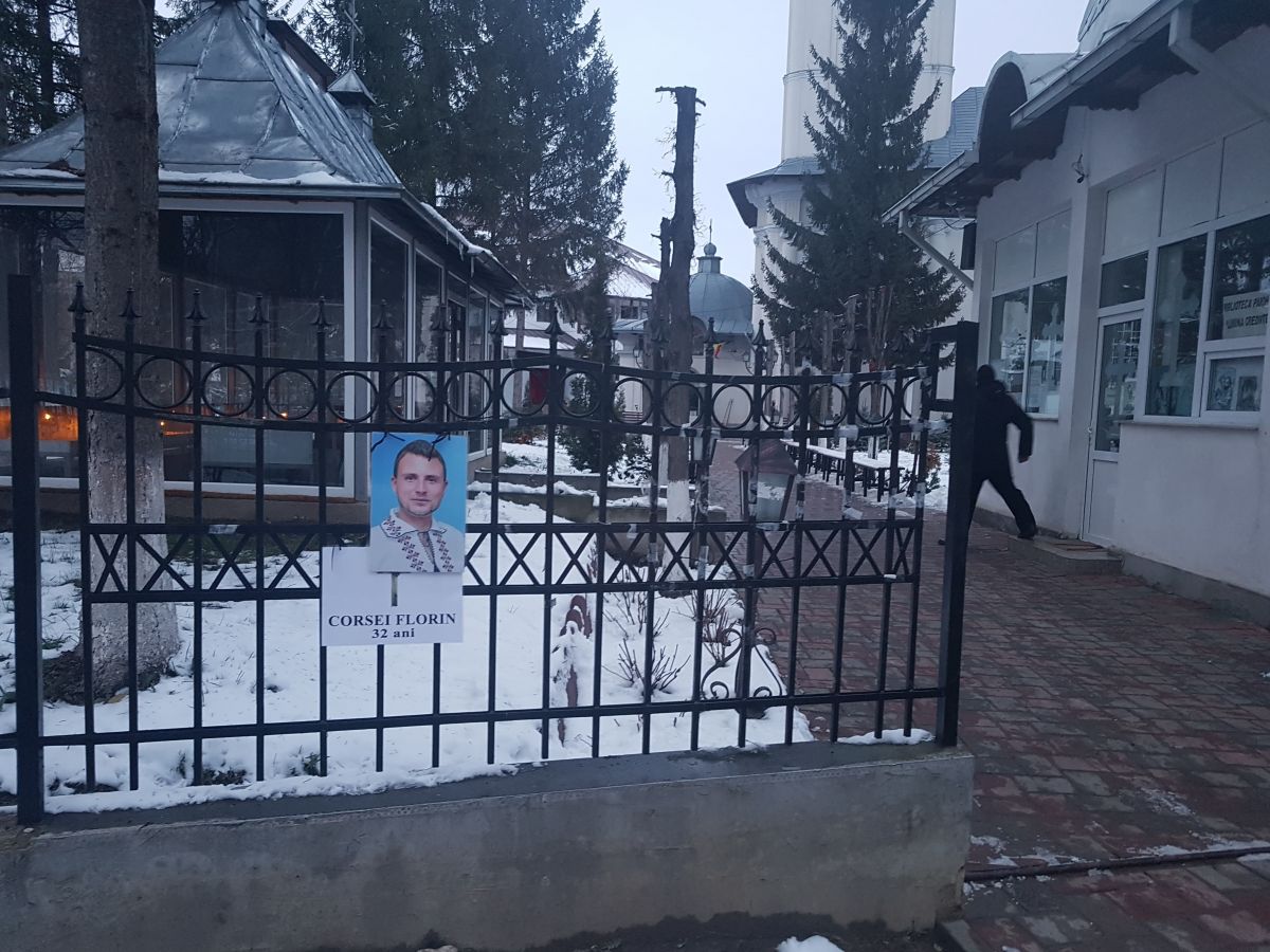 Trupul său a fost depus, după repatriere la Biserica Vovidenia din municipiul Botoșani. Din fotografie, Florin zâmbește senin în totală contradicție cu durerea care plutește în aer.