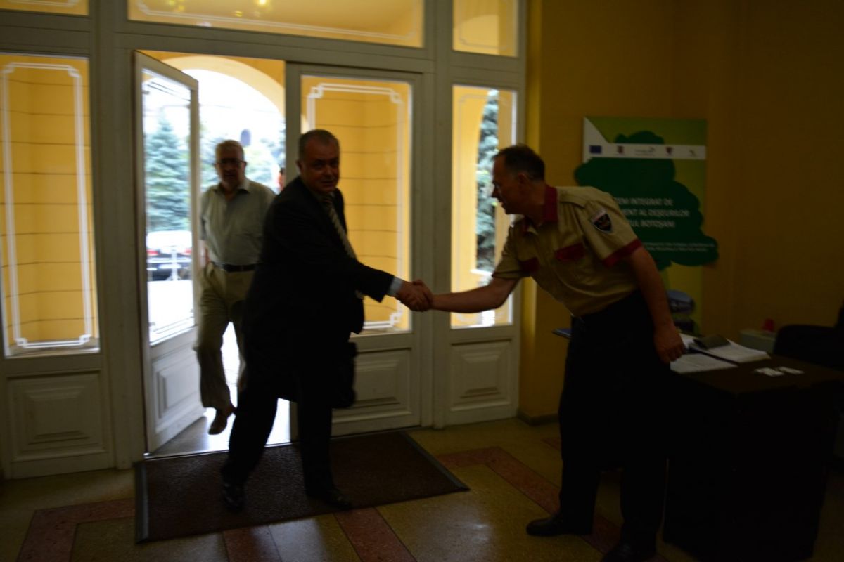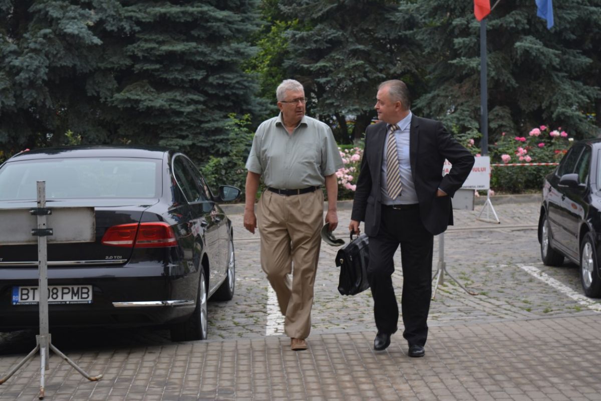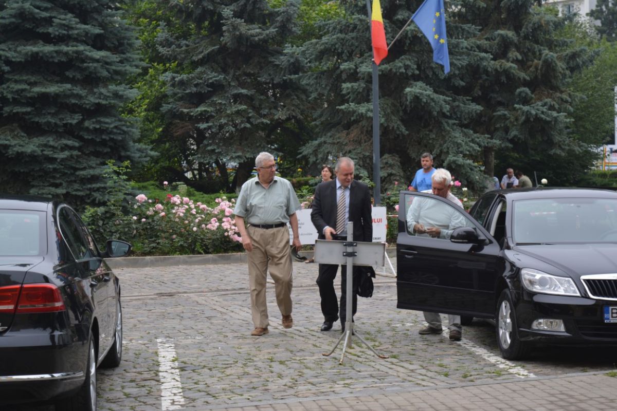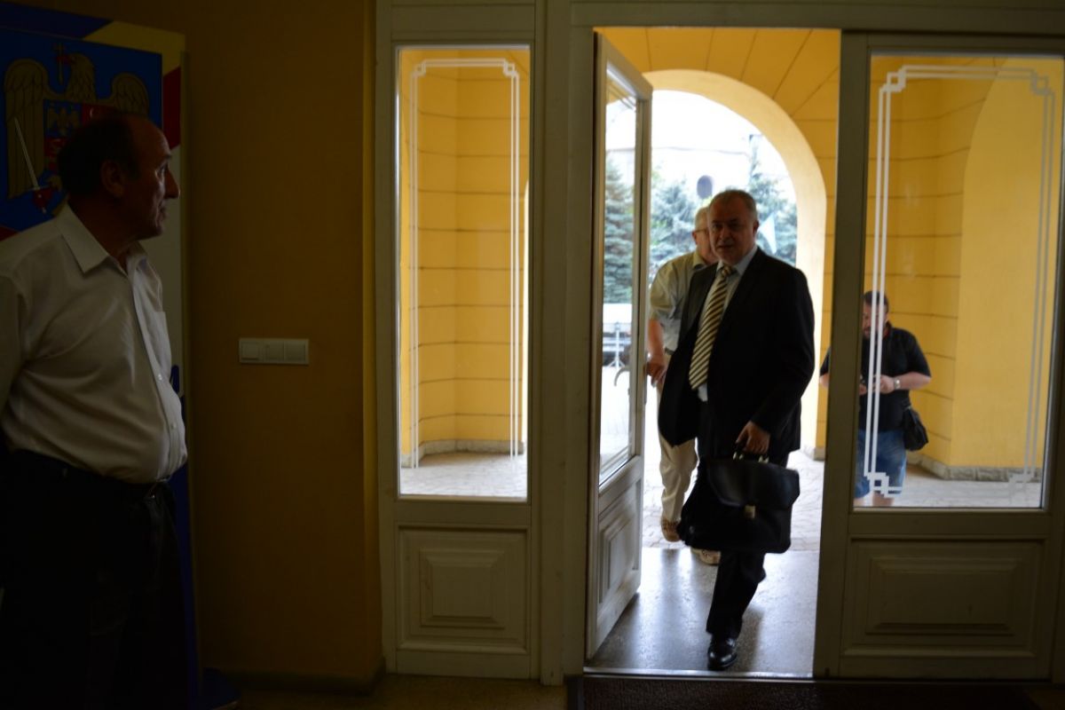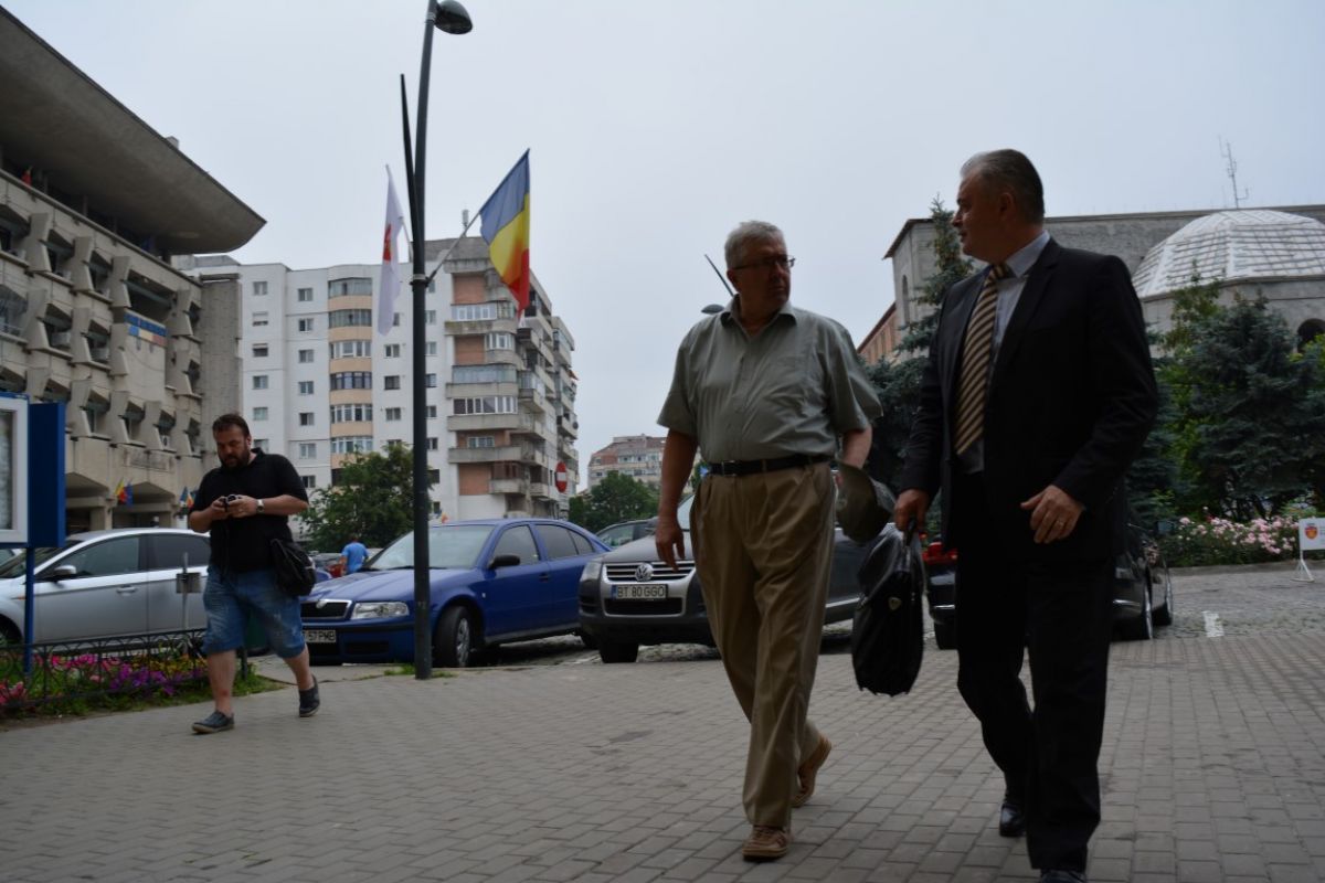 Primarul reales după patru ani a fost întâmpinat de un cetăţean, iar gardianul i-a deschis poarta salutându-l milităreşte: „să trăiţi d-le primar!”. Cătălin Flutur a urcat apoi la etaj şi a încercat să intre în biroul primarului, însă aici uşa era închisă, iar plăcuţa cu „primar Ovidiu Iulian Portariuc” încă era lipită acolo. Noul edil şef a intrat apoi în cabinetul şefului de la municipiu, întrebând dacă „dl primar este?”, după care i s-a deschis uşa. Cătălin Flutur a avut o întrevedere cu Ovidiu Portariuc, deschisă presei doar pentru câteva poze. (S.B.)