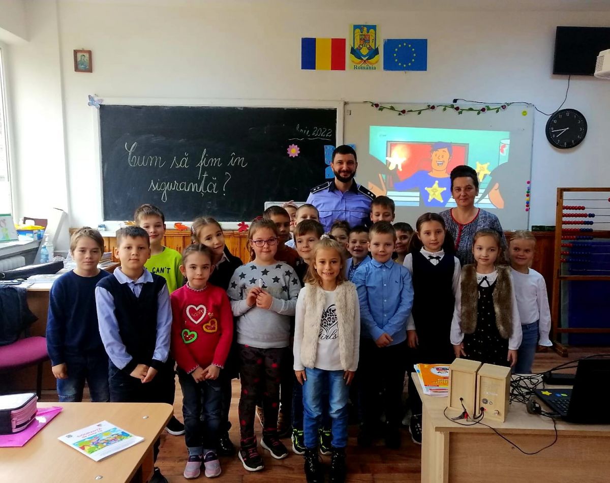 Astăzi, 31 octombrie 2022, polițiștii din cadrul Compartimentului de Analiză și Prevenire a Criminalității au desfășurat o activitate informativ-preventivă cu elevii clasei I, ”Fluturașii”, din cadrul Școlii Gimnaziale nr. 6 ”Grigore Antipa” Botoșani.