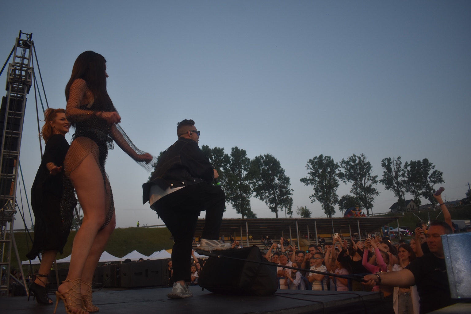 Un adevărat deliciu pentru privitori au fost cele două dansatoare, o brunetă și o blondă îmbrăcate tare sumar, care au încins recitalul. S-au pus pe spate, pe burtă, în genunchi și... i-au adus apă solistului vocal când acesta era lovit de sete.
