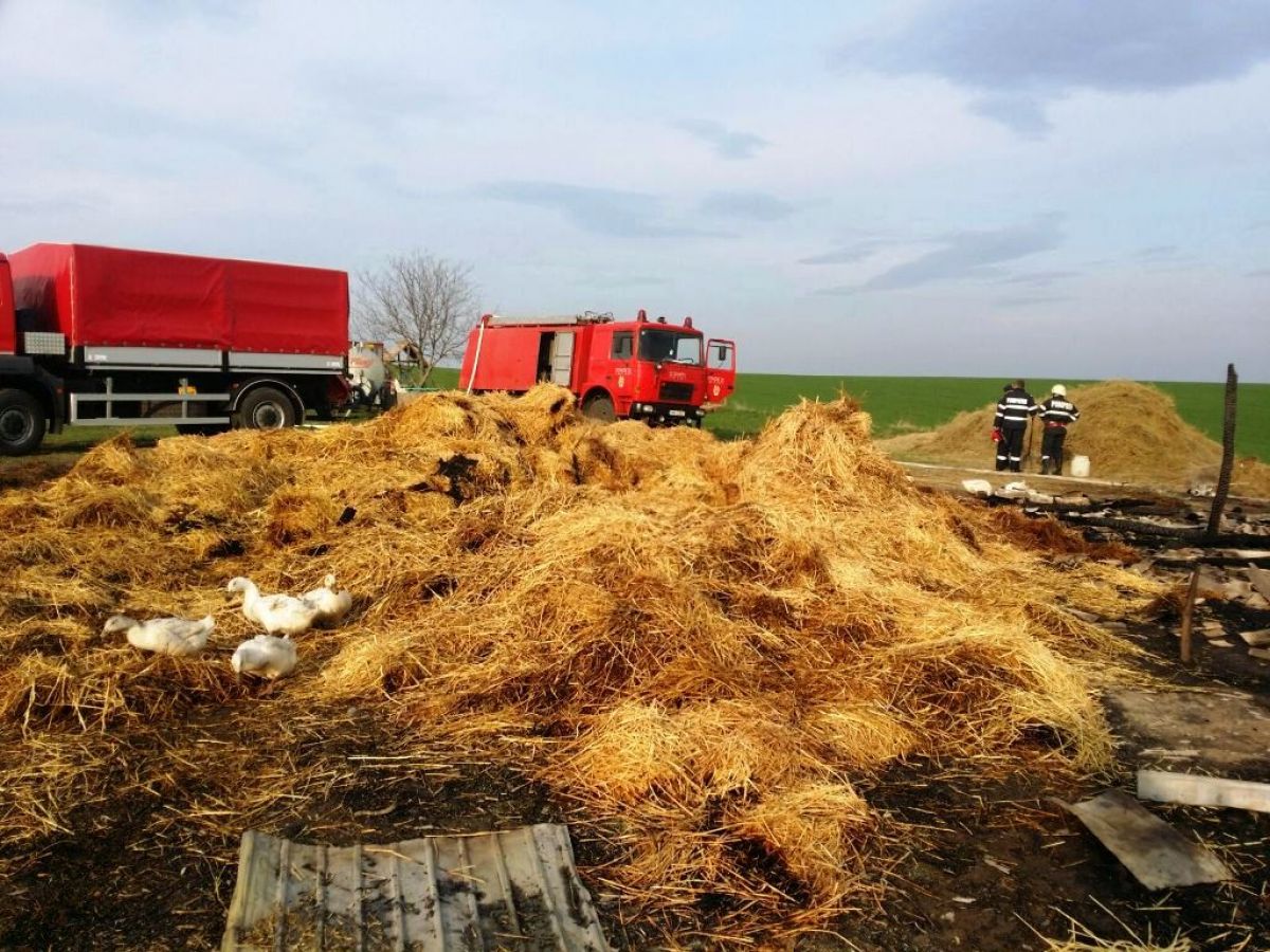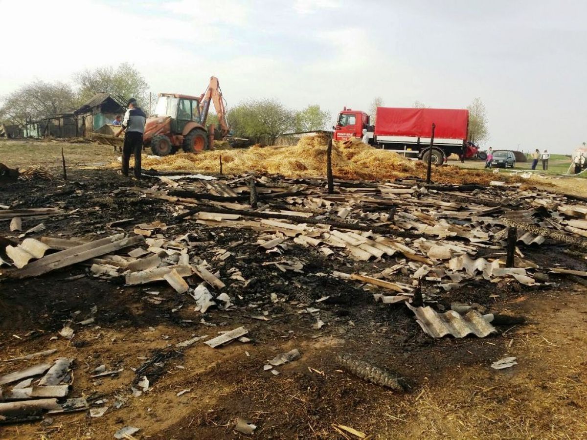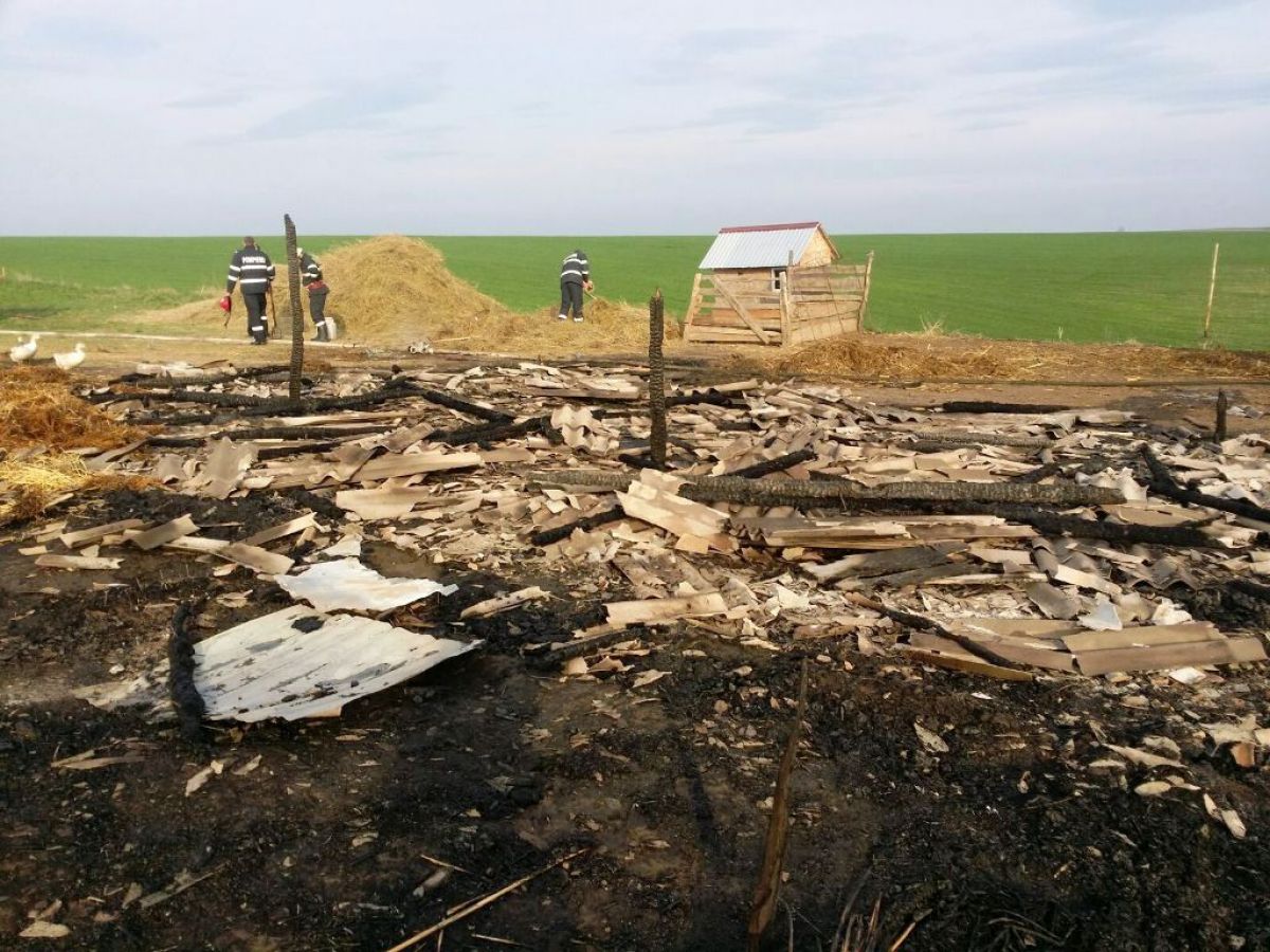 Flacarile au distrus doua adaposturi de animale si tone de furaje, valoarea pagubelor fiind estimata la circa 15.000 lei.