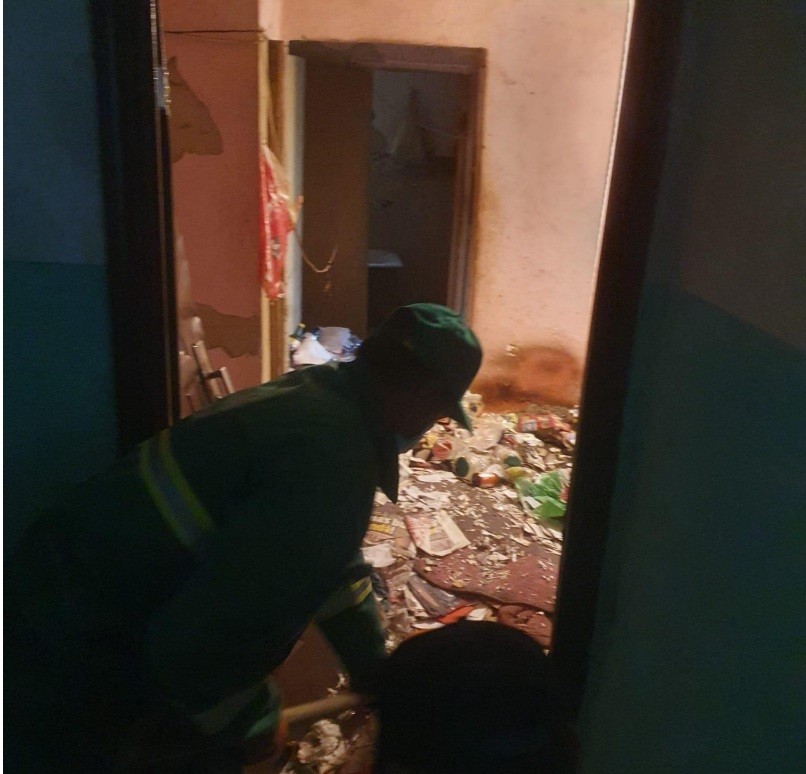 La fața locului, polițiștii locali au constatat că de mult timp nu au mai fost realizate activități de igienizare și curățenie, în locuință fiind adunate deșeuri de tot felul: cartoane, peturi, recipiente cu alimente expirate, de pe casa scării persistând un miros
