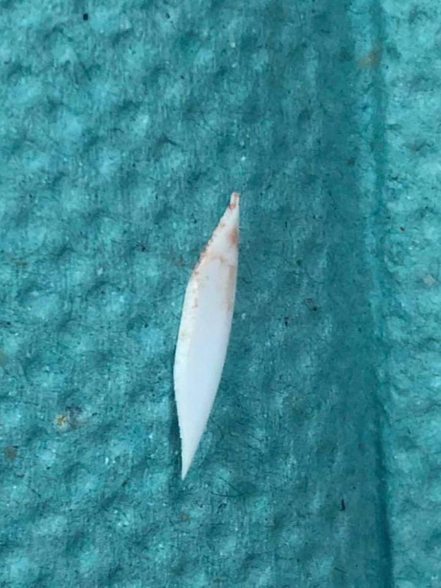 Bucatata de plastic i-a fost extrasă din esofag și a urmat apoi un tratament de cinci zile cu antibiotic.