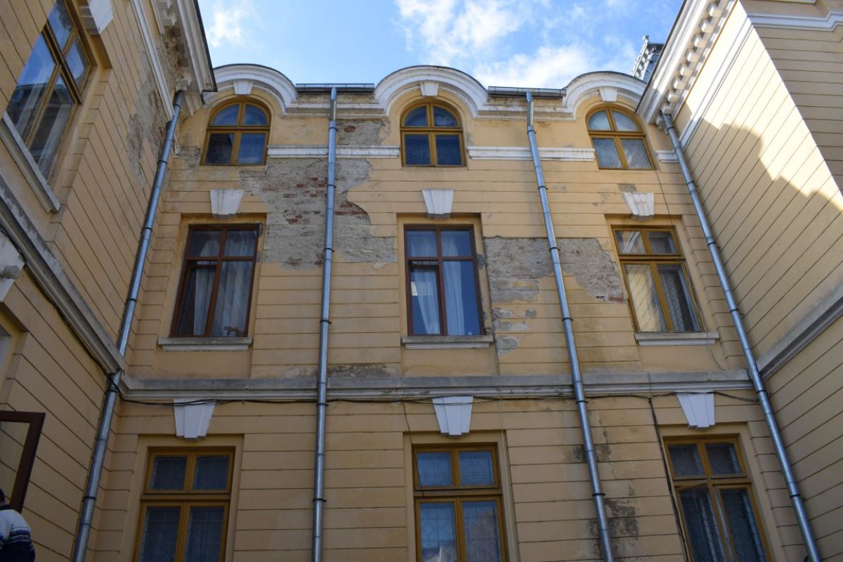 Trecerea timpului peste clădirea care găzduiește acum Muzeul Județean Botoșani poate fi observată ușor și din exterior, unde bucăți întregi de fațadă s-au desprins de pe ziduri.