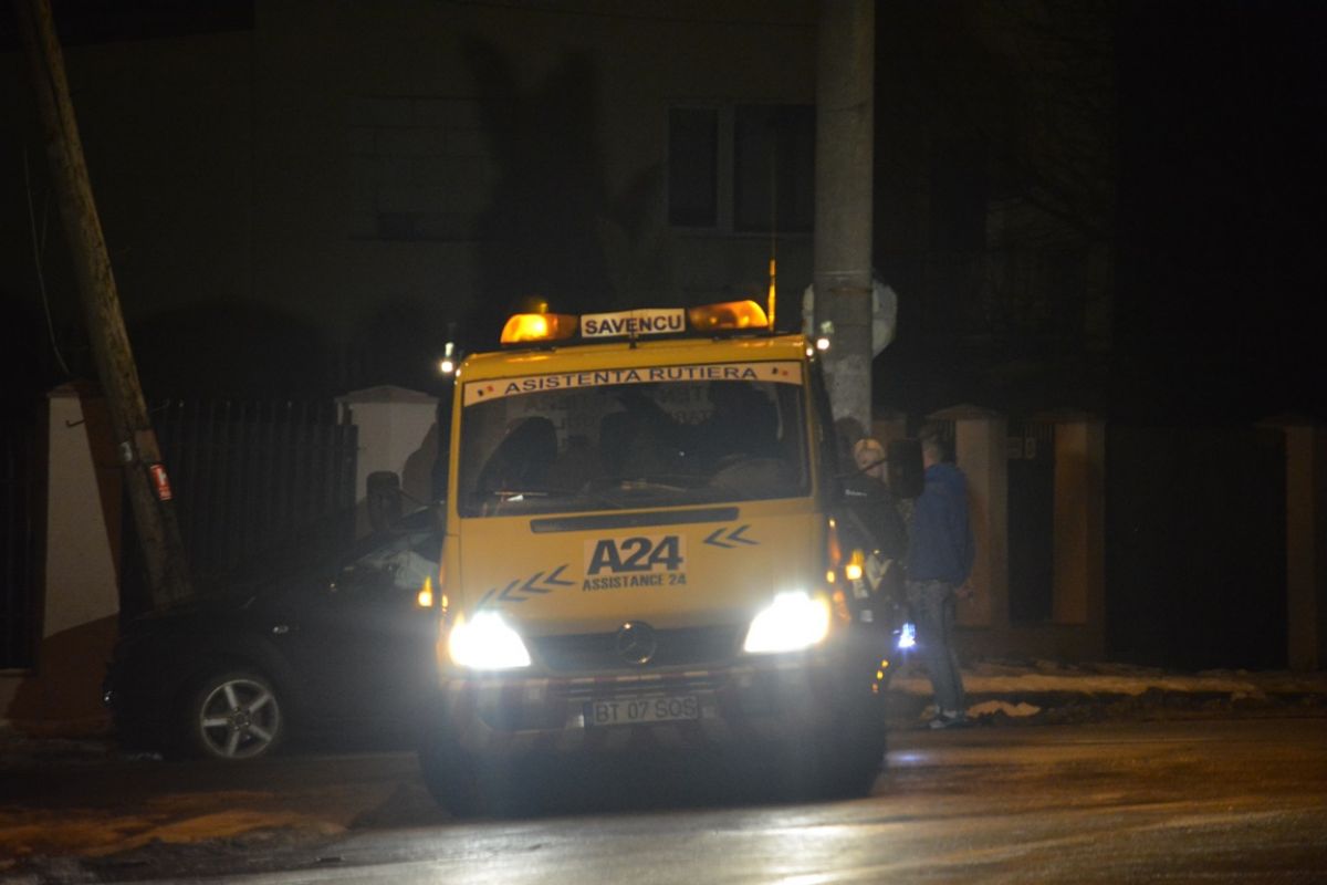 Conducătorul auto se deplasa pe strada Victoriei, dinspre Camera de Comerț spre bariera Sulița și la intersecția cu strada Miorița a derapat. A pierdut controlul asupra volanului și a lovit un stâlp aflat pe partea dreaptă a drumului, care s-a înclinat până la gardul unei case. La fața locului a sosit un echipaj de la SOS Botoșani pentru a scoate mașina din stâlp. Pe nici una din cele două căi rutiere menționate nu era împrăștiat material antiderapant în ciuda poleiului masiv de pa carosabil. (S.B.)